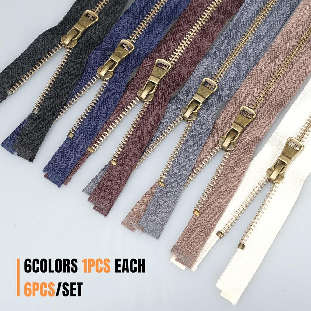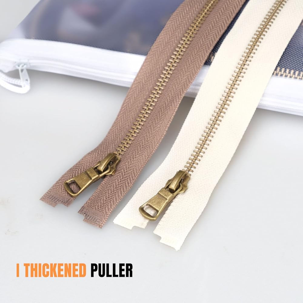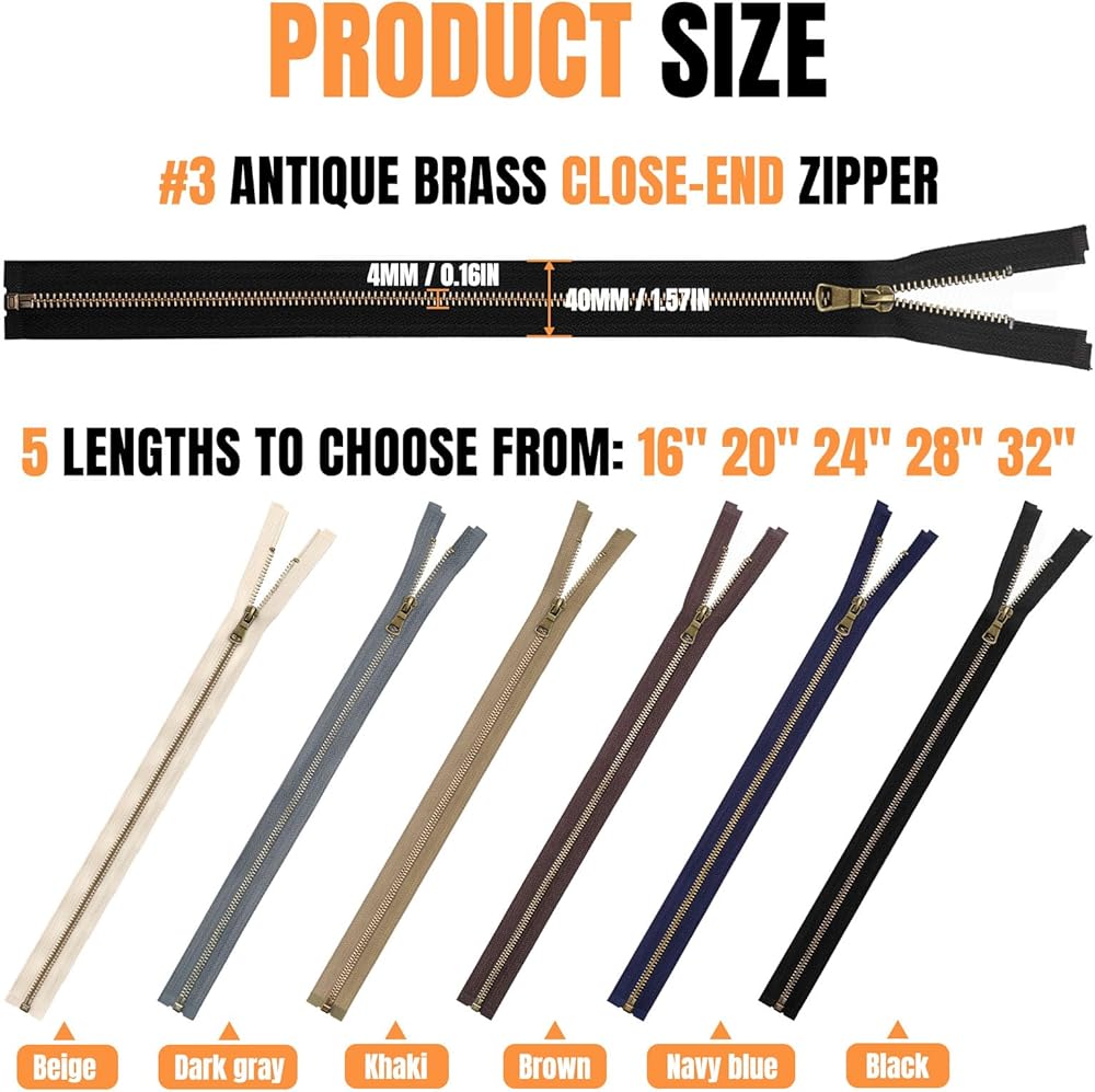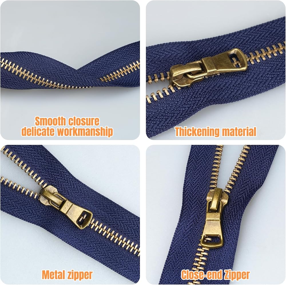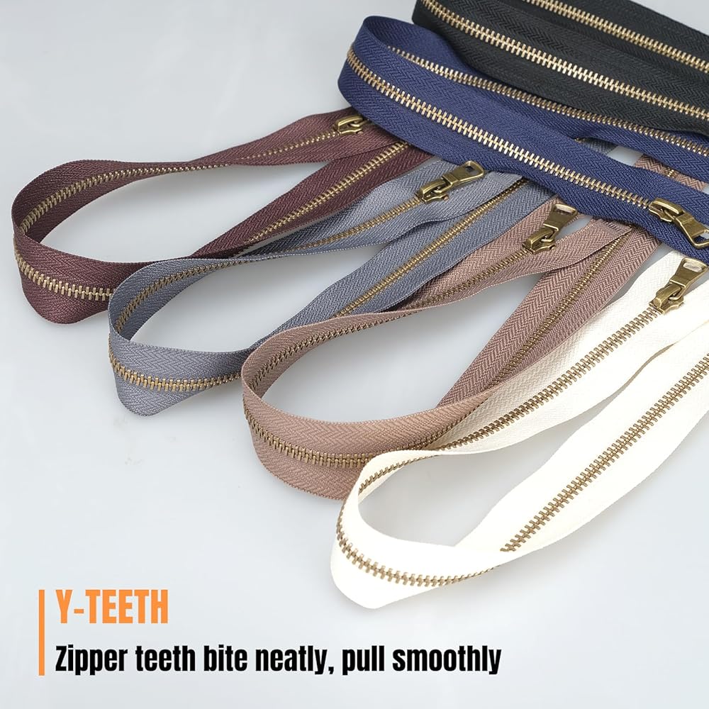 سحابات معدنية شديدة التحمل مع هيكل أسنان على شكل حرف Y من النحاس العتيق رقم 5. شريط سميك من النايلون وسحّاب معزز يعزز المتانة، ويتفوق على سحابات الراتنج القياسية. تضمن السحابات المعدنية المنزلقة بسلاسة للخياطة أداءً طويل الأمد في التطبيقات عالية الضغط