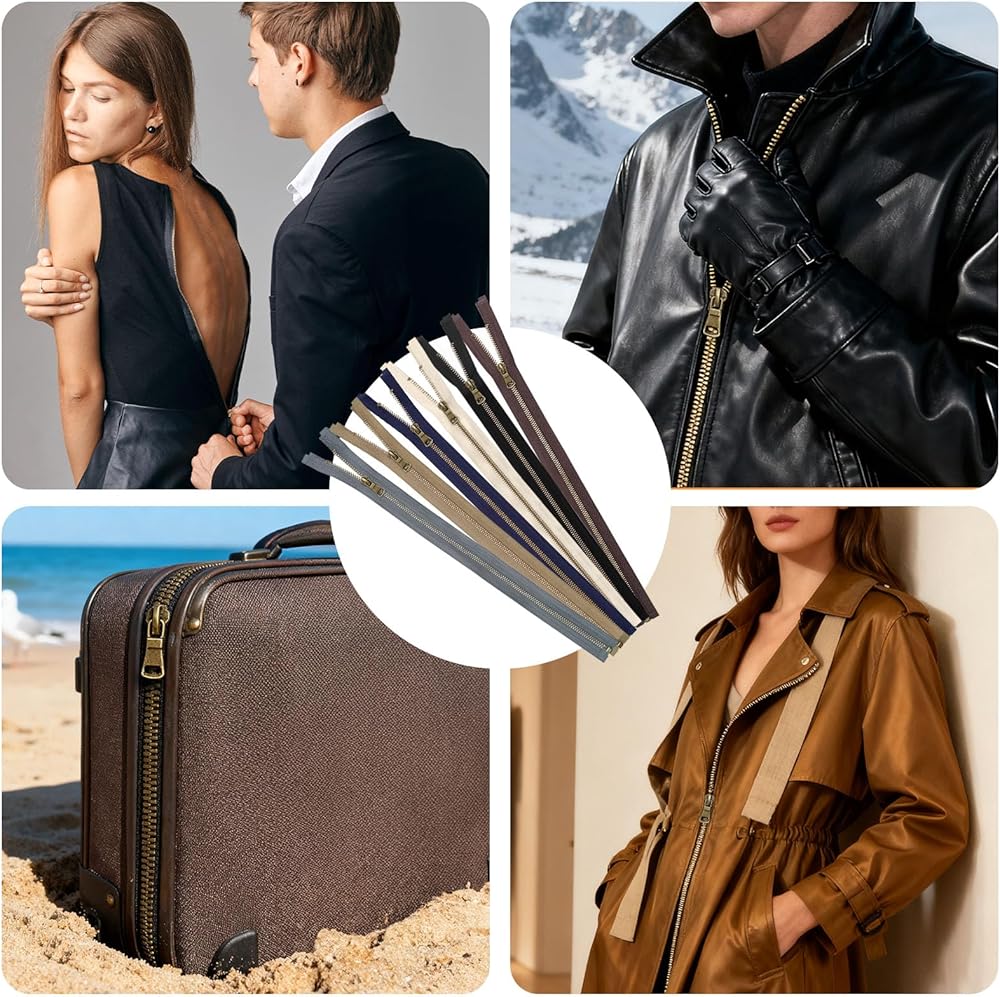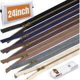 6 قطع متنوعة من أشرطة السحاب رقم 5: أسود/بيج/كاكي/رمادي داكن/أزرق داكن/بني. سحابات كاملة لخياطة مقاس 20 بوصة وأحجام أصغر، مما يوفر حلولاً متعددة الاستخدامات لخياطة مكونات سترة السوستة أو مهام الإصلاح
