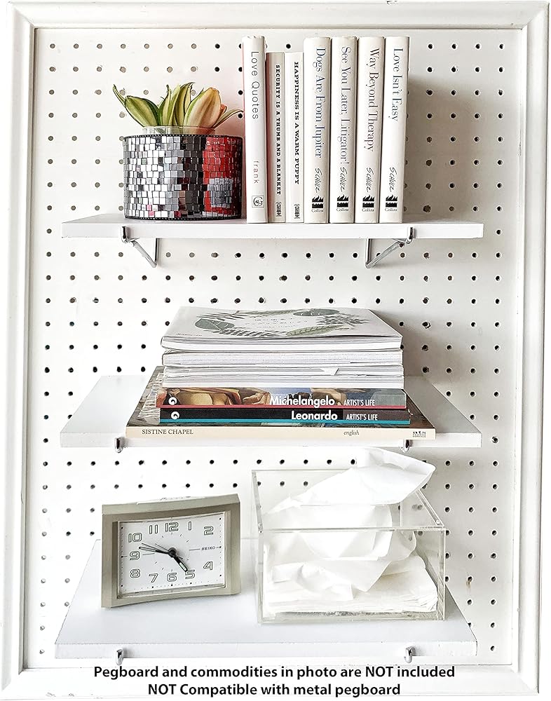 ✅ أرفف بيضاء أنيقة للوح الخشبي: تأتي مجموعة أرفف الألواح الخشبية الخاصة بنا بلون أبيض لا يتأثر بمرور الزمن يتناسب بسهولة مع أي لوح تثبيت ويكمل الديكور الكلاسيكي أو الريفي أو الحديث لغرفتك.