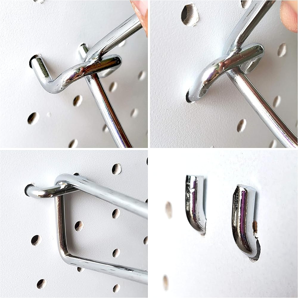 ✅ تعليق الأشياء الثقيلة بأمان: مصنوعة من سلك شديد التحمل، دعامات الرفوف القوية مثالية لفتحات لوح التثبيت مقاس ¼ انش وستحمل الأشياء الثقيلة التي يصل وزنها إلى 15 باوند دون السقوط أو الكسر أو الانحناء. لن يعمل مع لوح التثبيت المعدني.
