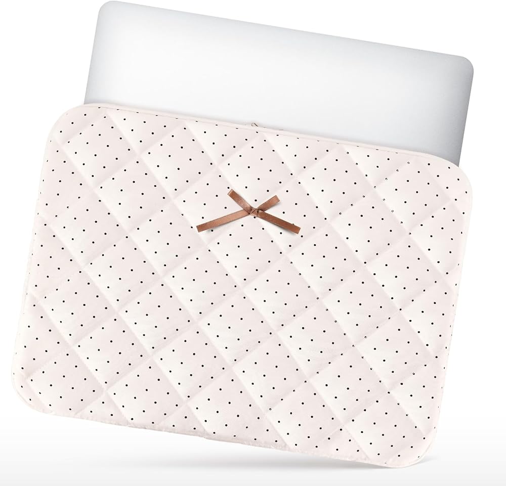 • 【Cute Quilted Laptop Sleeve】: Say goodbye to boring black bags! This fashionable laptop sleeve features a distinctive quilted pattern and a sweet decorative bow, making it a truly cute and stylish computer accessory. It adds an aesthetic, feminine touch to your daily carry, perfect for students and professionals alike.