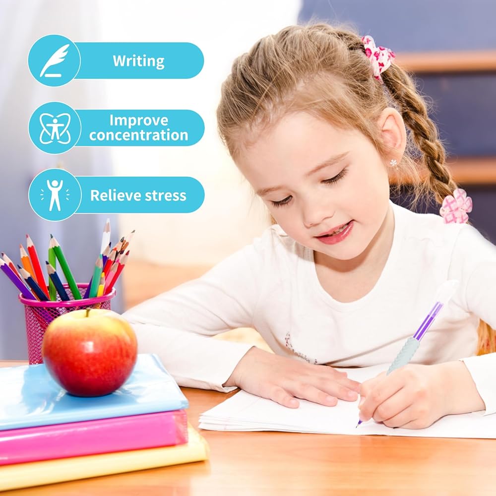 Sensory Function: The pencil grips feature an ergonomic design that assists with writing and drawing and coloring, improve kids' focus, alleviate stress, enhance imagination and relieve hand fatigue.