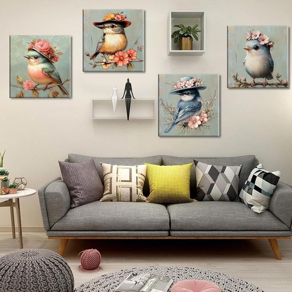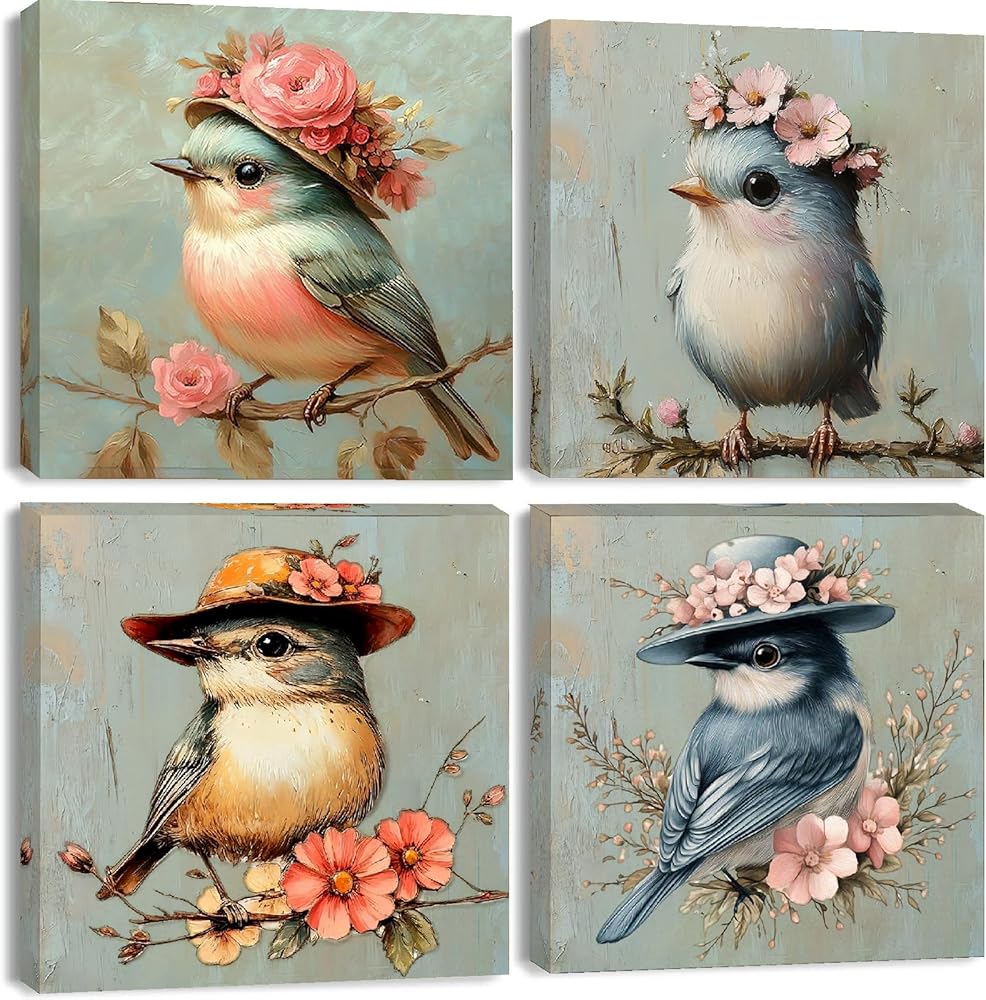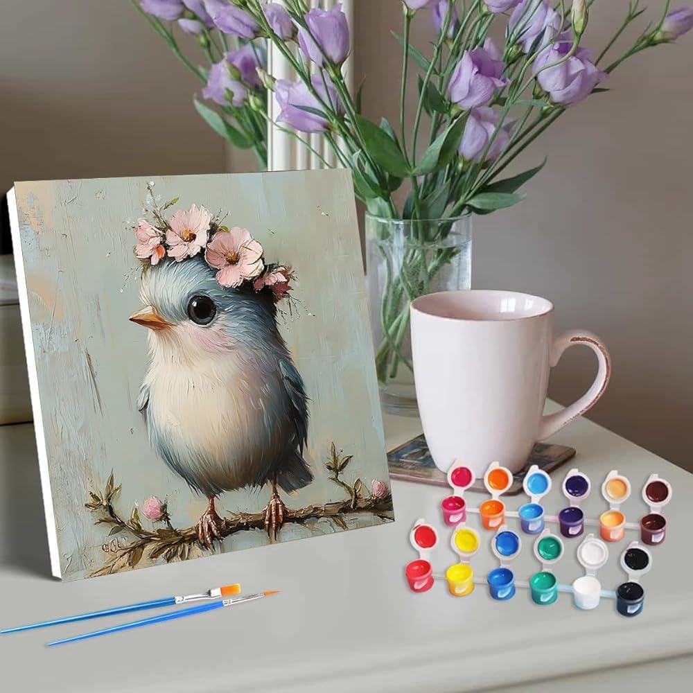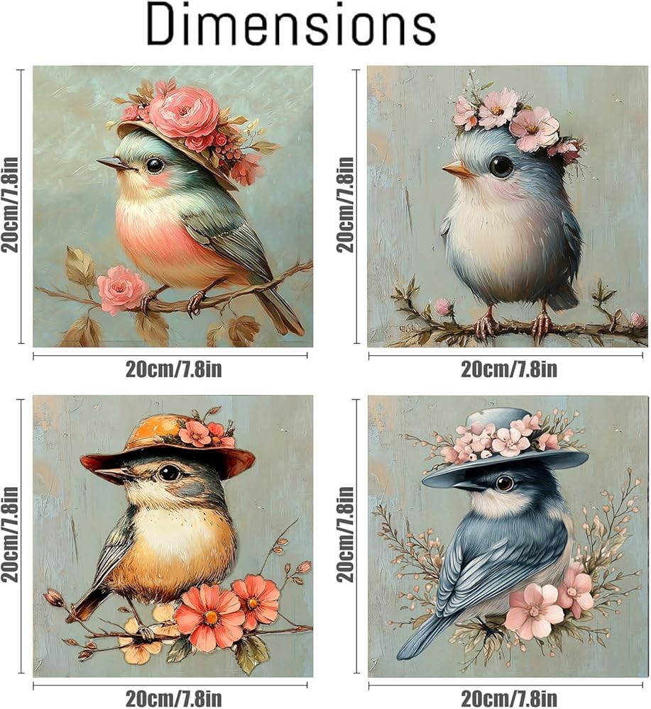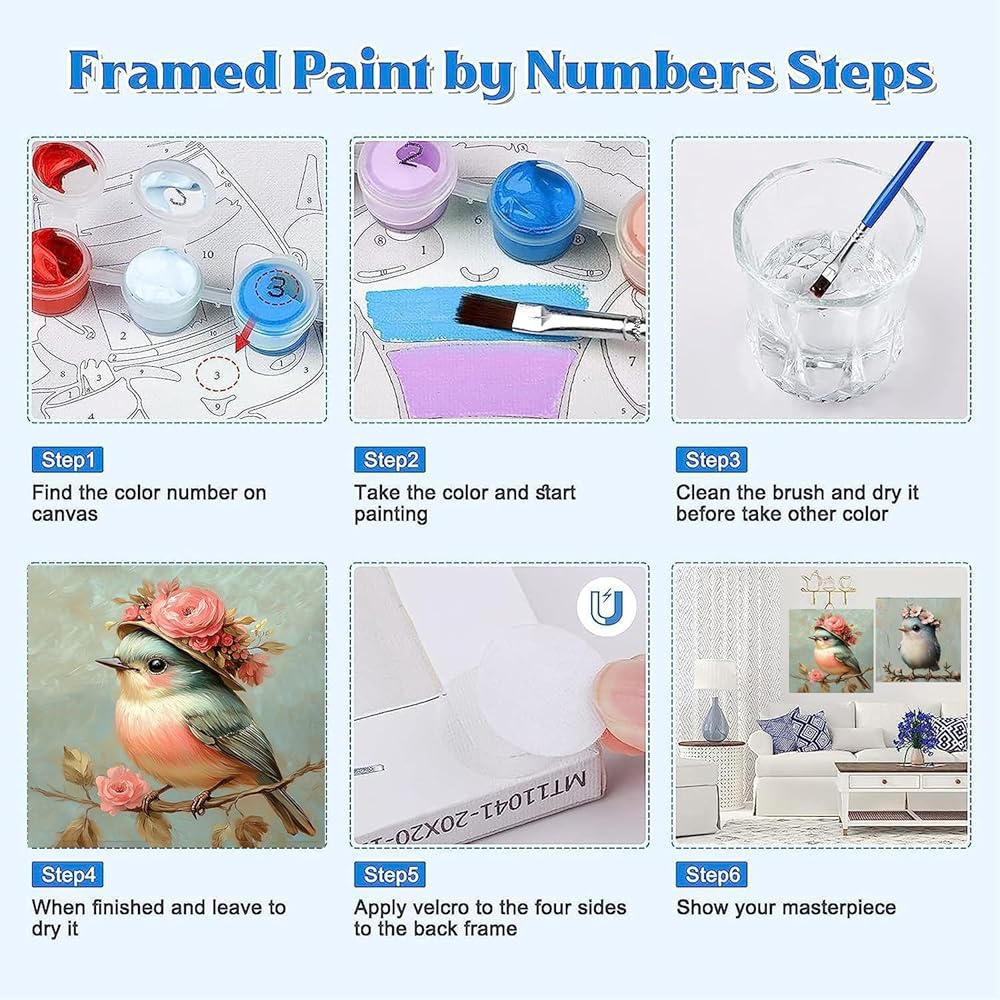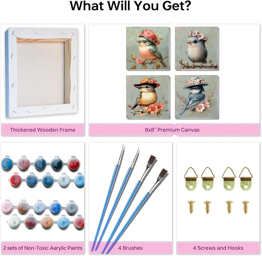 مجموعة مكونة من 4 قطع من طلاء الطيور بالأرقام من كليندو للبالغين المبتدئين مؤطرة - مجموعة طلاء بالأرقام للبالغين DIY على القماش مع إطار، لوحة زيتية صغيرة سهلة الاستخدام من الأكريليك لديكور جدار المنزل (8 × 8 بوصة)