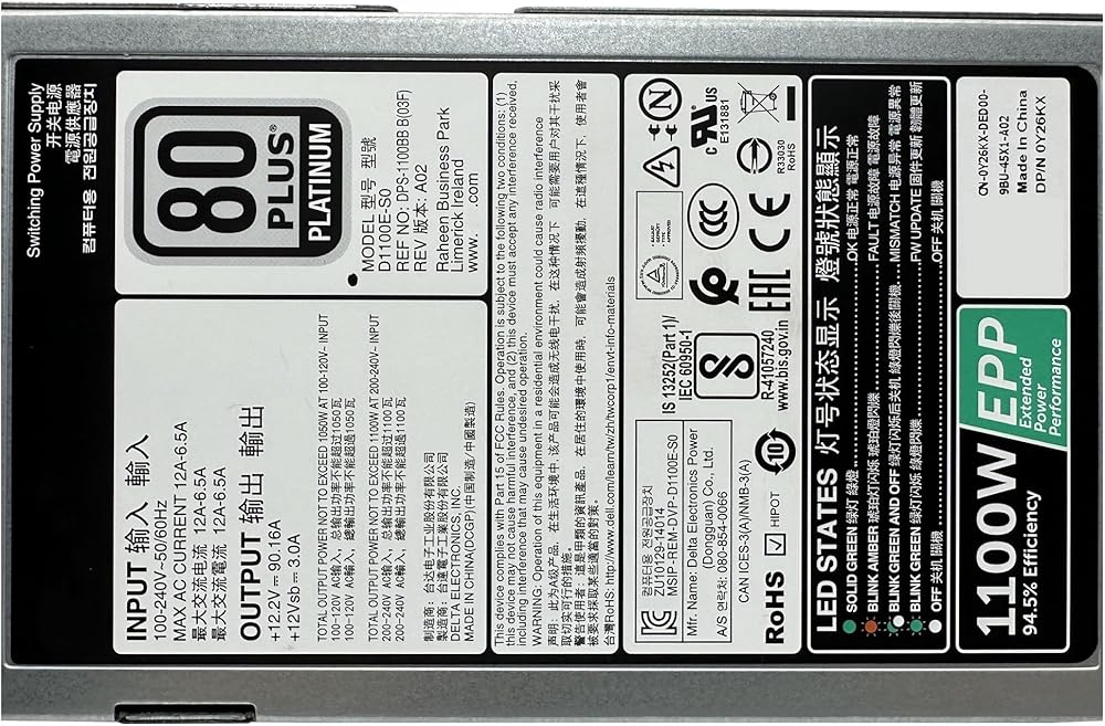 R730 R740 R530 R630 1100W Power Supply 0Y26KX 0CMPGM 0TFR9V D1100E-S0