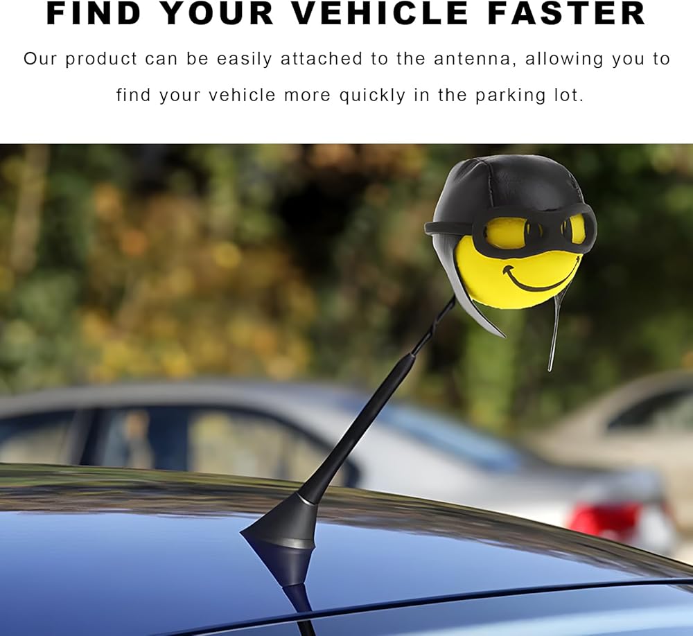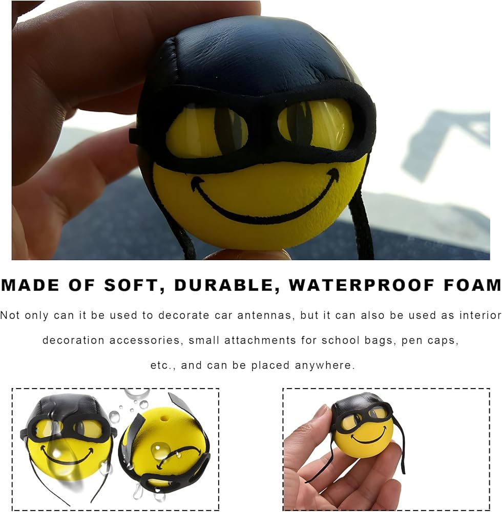 Stylish Decoration: Our yellow pilot antenna ball has a smile pattern with simple lines outlining the eyes and mouth, making it highly eye-catching. It also comes with a black helmet to enhance its three-dimensionality and layered effect. Use it to decorate your vehicle and add fun to your journey