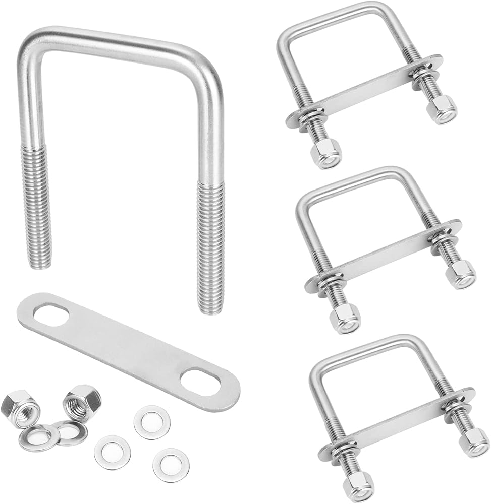 4 عبوات من البراغي المربعة على شكل حرف U من الفولاذ المقاوم للصدأ على شكل حرف U مقاس 3-1/8 بوصة ذات عرض داخلي لمقطورة القارب مع غسالات وصواميل وقطع غيار وإكسسوارات لمقطورة السيارات أو قارب التزلج أو مقطورة المراكب الشراعية