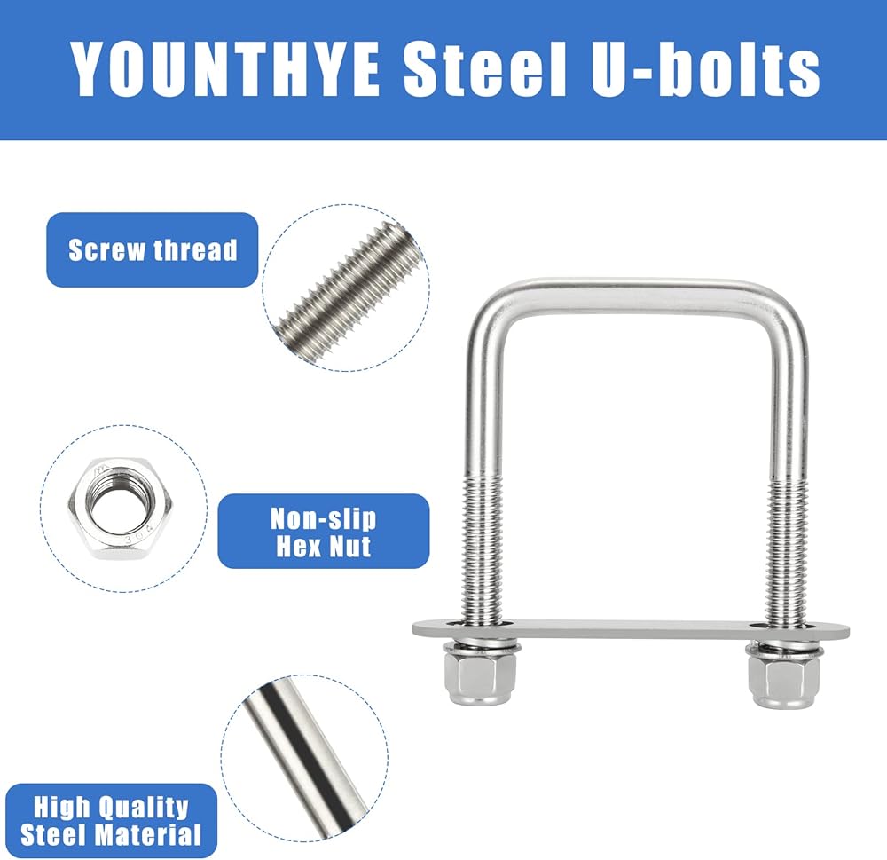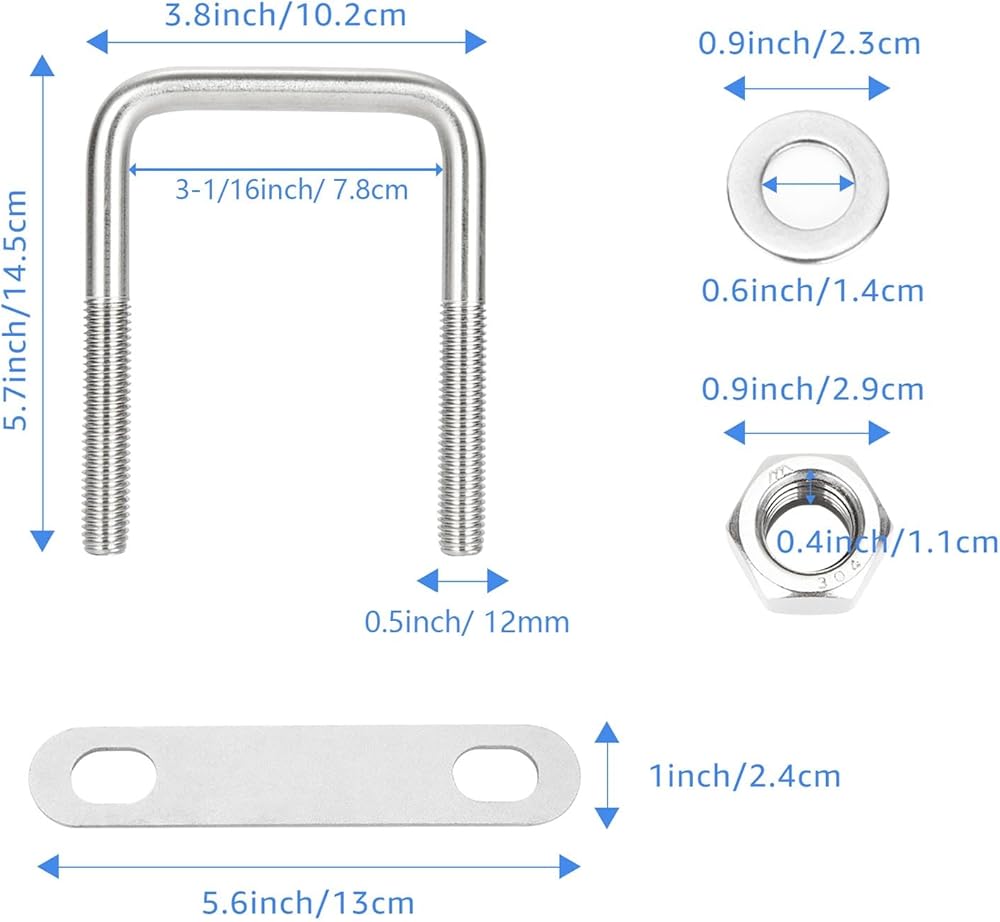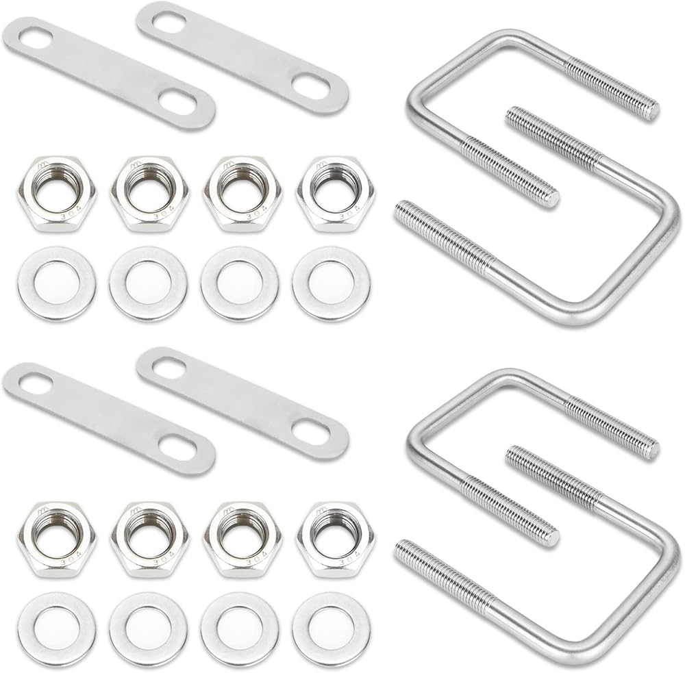 مجموعة U-Bolt - تتضمن العبوة 4 قطع من مسامير U، و16 قطعة من الغسالات المستديرة، و8 قطع من الصواميل السداسية، و4 قطع من ألواح الإطار، وجميع الملحقات مصنوعة من الفولاذ المقاوم للصدأ.