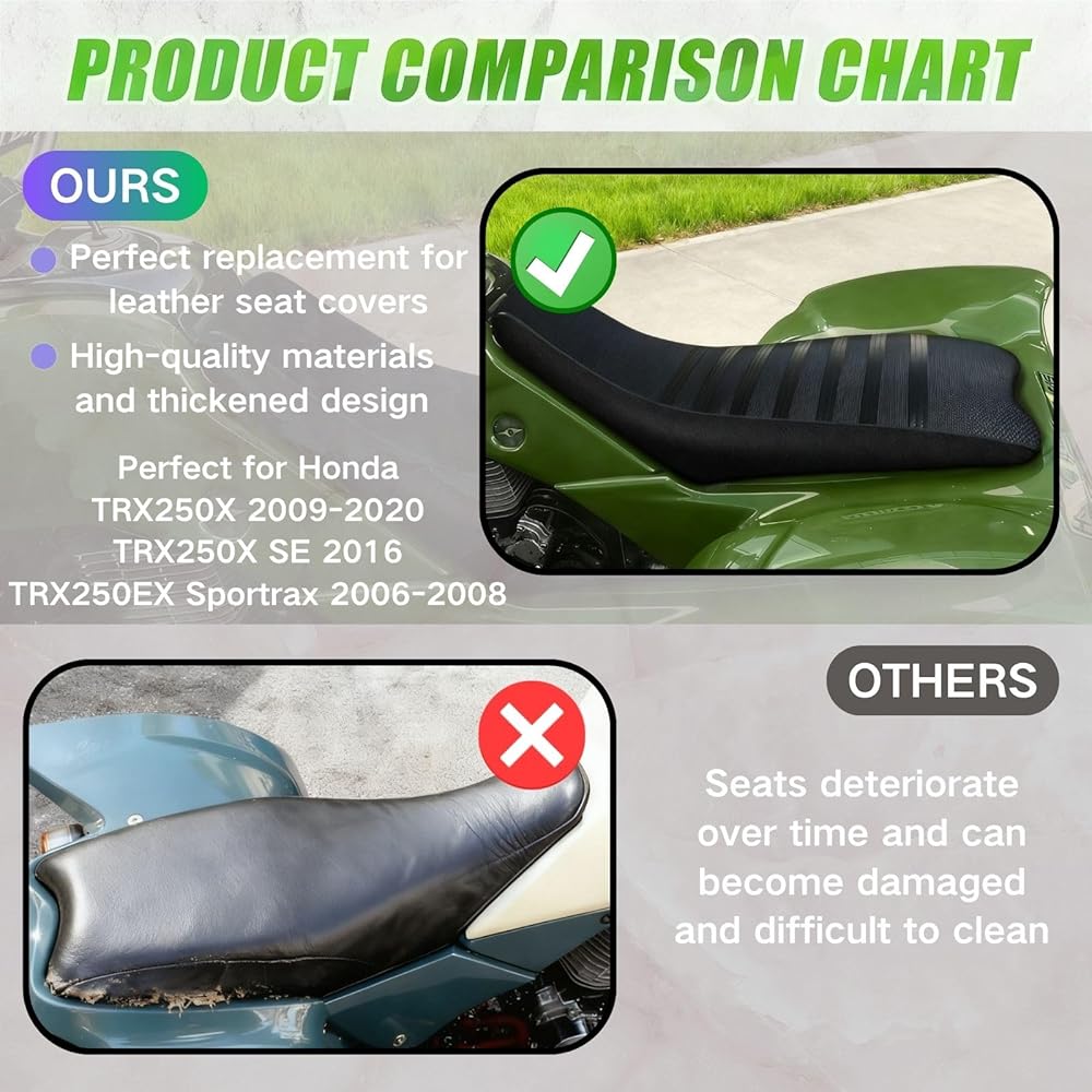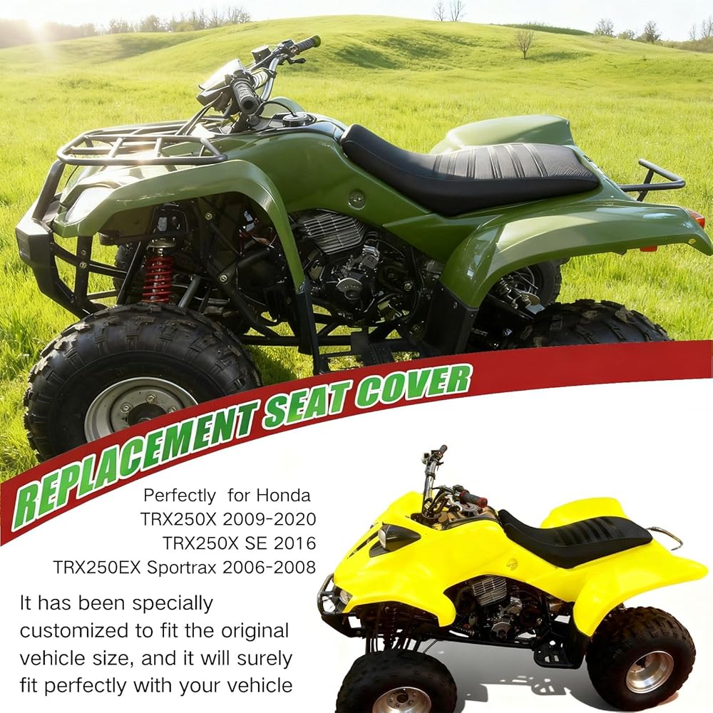 ملاءمة مثالية: لموديلات Honda TRX 250EX و250X (موديلات 2006 - 2020)، مما يضمن ملاءمة محكمة وثابتة لمقعد السيارة لجميع التضاريس.
