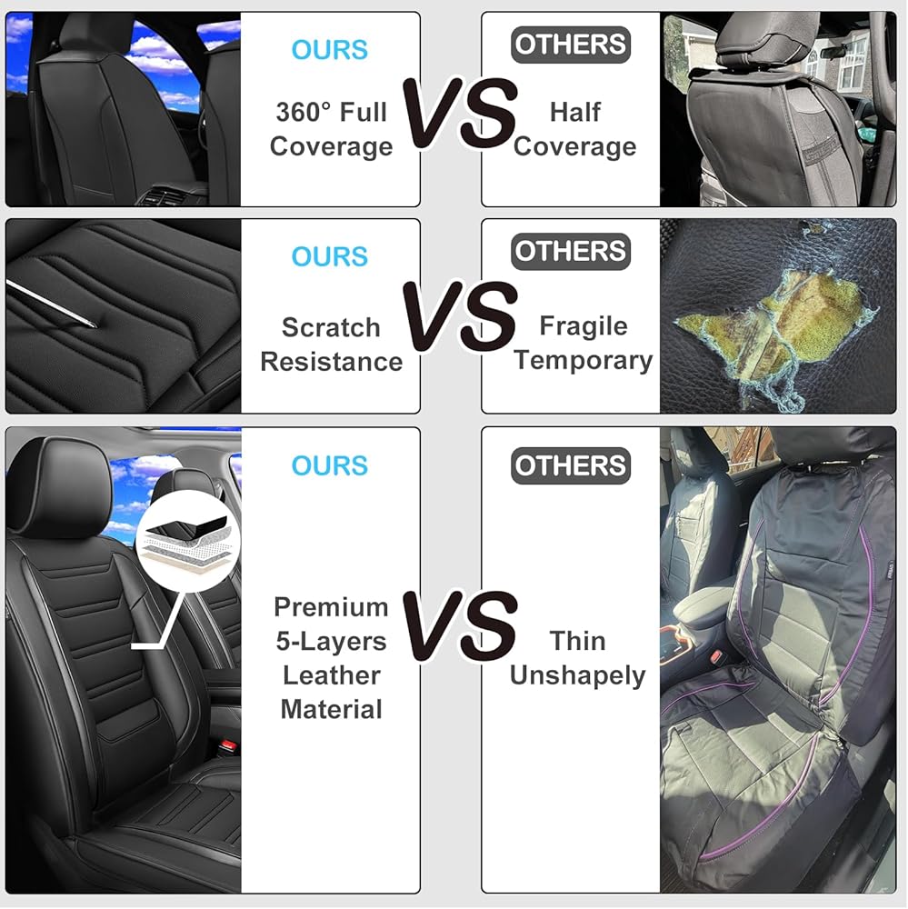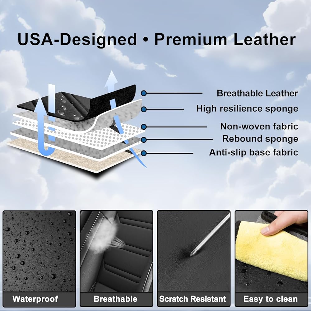 【تعزيز الفخامة】تخطي الأغطية الواهية! أغطية المقاعد المصنوعة من الجلد الصناعي الفاخر (مصممة خصيصًا لسيارتك) مقاومة للماء وسهلة التنظيف ومتينة للاستخدام اليومي. ارفع مستوى التصميم الداخلي الخاص بك + احمِ المقاعد الأصلية - مربح للجانبين.