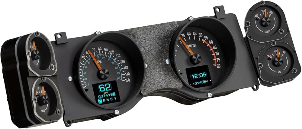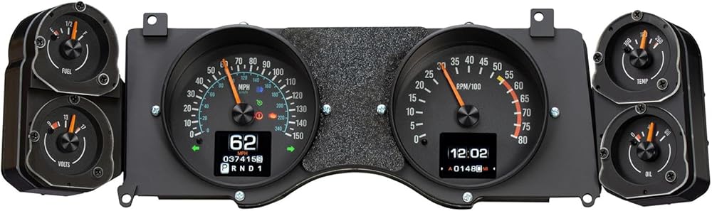 • Included Analog Gauges: Speedometer, Tachometer, Oil Pressure, Water Temp, Voltmeter, and Fuel Level.