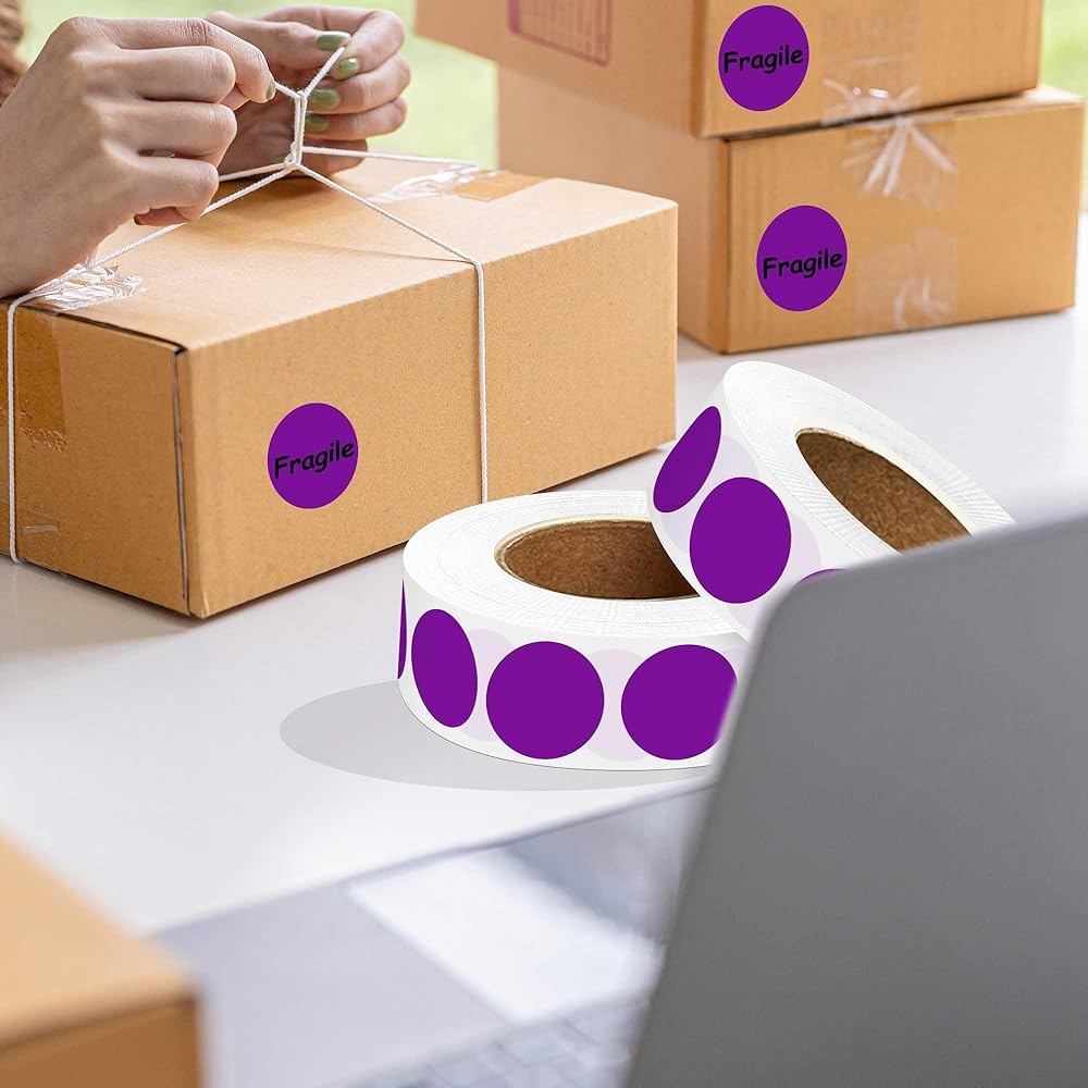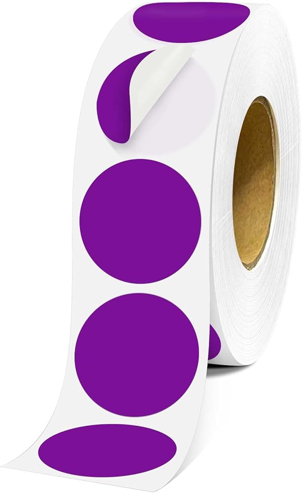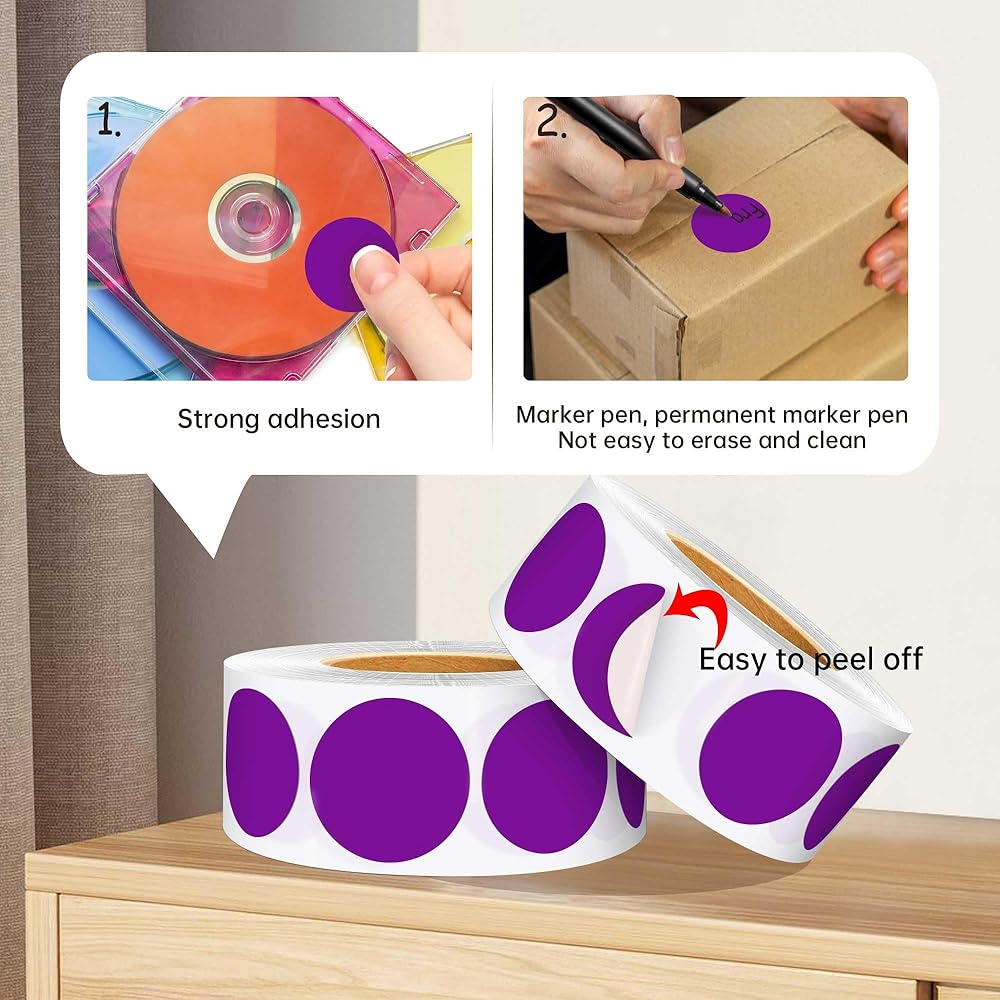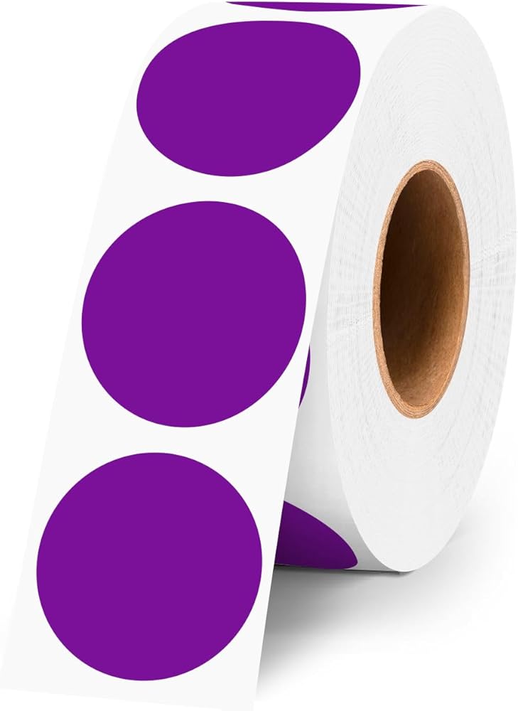 1000 قطعة معبأة في لفة سهلة التوزيع بخطوط مثقوبة. يمكن للملصقات البسيطة ذات النقاط البيضاء الفارغة أن تجعل من السهل تصنيف العناصر الخاصة بك وتحديدها. عندما تكون مشغولاً، تصبح العناصر المحددة واضحة في لمحة.