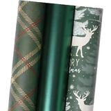 لفات ورق تغليف عيد الميلاد من sayrrame - مجموعة من 3 لفات من ورق تغليف الهدايا باللون الأحمر غير اللامع الفاخر (17 بوصة × 33 قدم)، تتميز بشجرة عيد الميلاد، الرنة، منقوشة حمراء، تصميمات مخططة لتغليف الهدايا