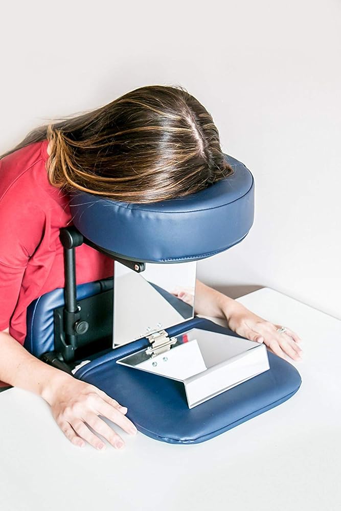 This mirror allows the patient to see what's in front of him or her, while maintaining correct face-down positioning. The 2-way mirror allows the patient to see his or her surroundings, converse with family, friends, and co-workers, and even watch TV! Please consult your doctor before attempting any activities. Made in USA