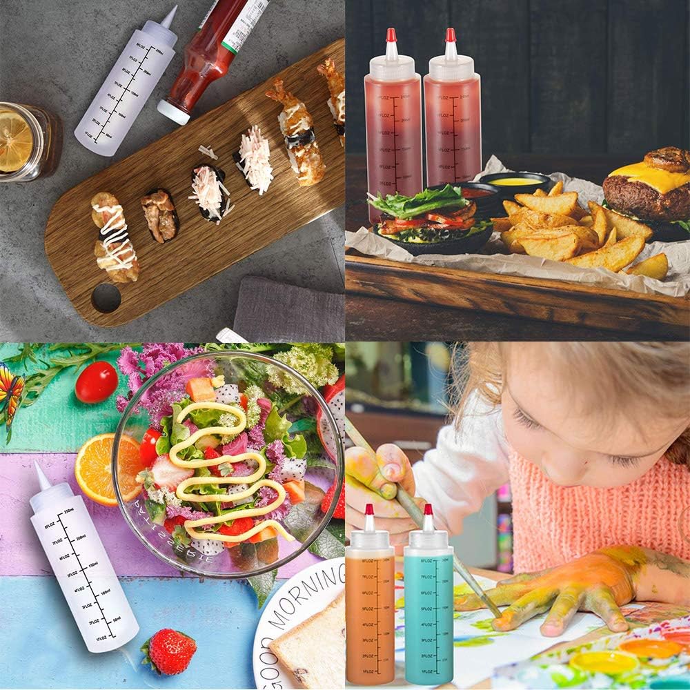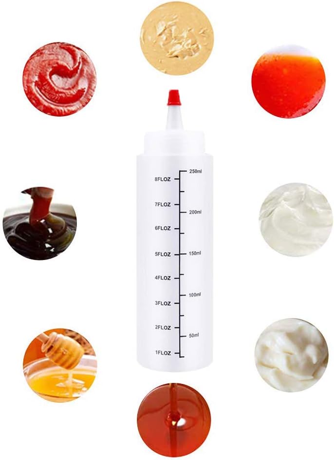 - تعتبر زجاجات الضغط هذه التي تزن 24oz مثالية لتخزين وتقديم التوابل المفضلة لديك، والكاتشب، وصلصات الشواء، وزيت الزيتون، والشراب، والصلصة، وصلصة السلطة، وصلصة الفلفل الحار، والخردل، والمايونيز، وصلصة الصويا، والشوكولاتة الذائبة، وخليط الفطائر، وشراب القيقب. كراميل، زبدة الفول السوداني، صلصة السوشي وأي سائل آخر.