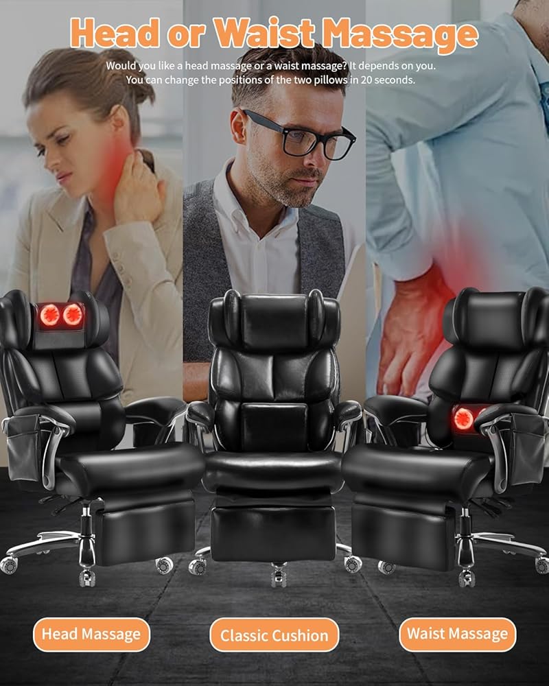 🌟【التدليك والحرارة وتخفيف التعب】تم تجهيز كرسي مكتب التدليك هذا بـ 8 عقد عجن. يوفر 6 أوضاع للتدليك ومستويين للكثافة لمنطقتين مستهدفتين (الرقبة والخصر). يمكن للاهتزاز عالي التردد أن يتعمق في العضلات لتخفيف التعب. جنبًا إلى جنب مع وظيفة التسخين المهدئة، فهو يساعدك على الاستمتاع بالاسترخاء التام. يسخن خلال 15 دقيقة ويستقر عند 40 درجة مئوية. سواء كنت تعمل أو تلعب أو تستريح، يمكن لكرسي المكتب المنزلي أن يختفي التوتر.