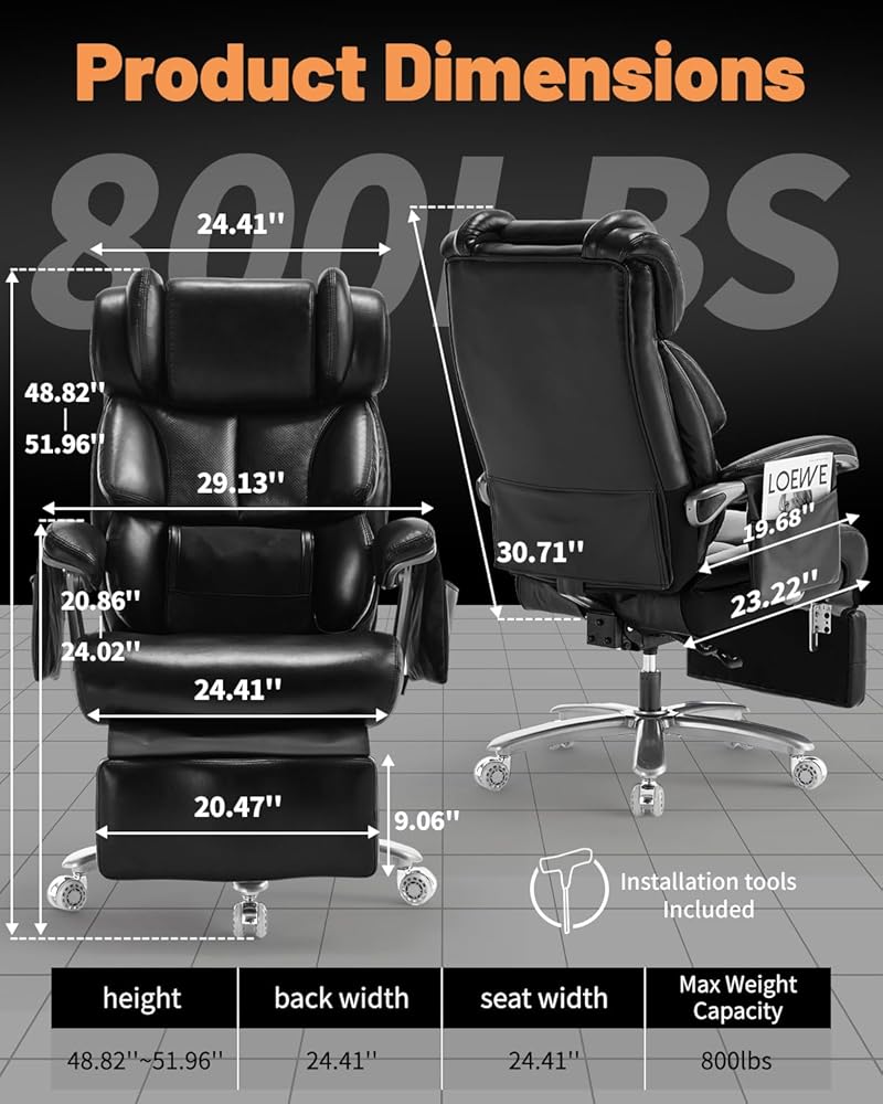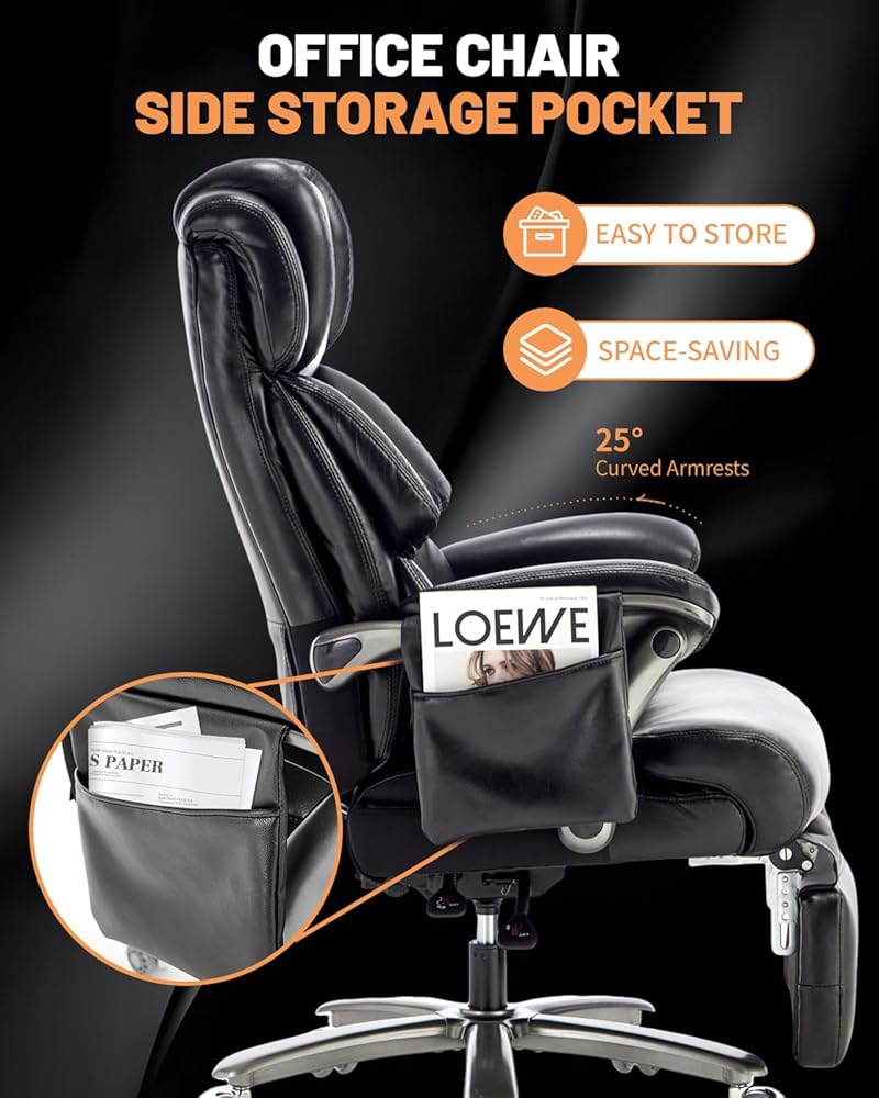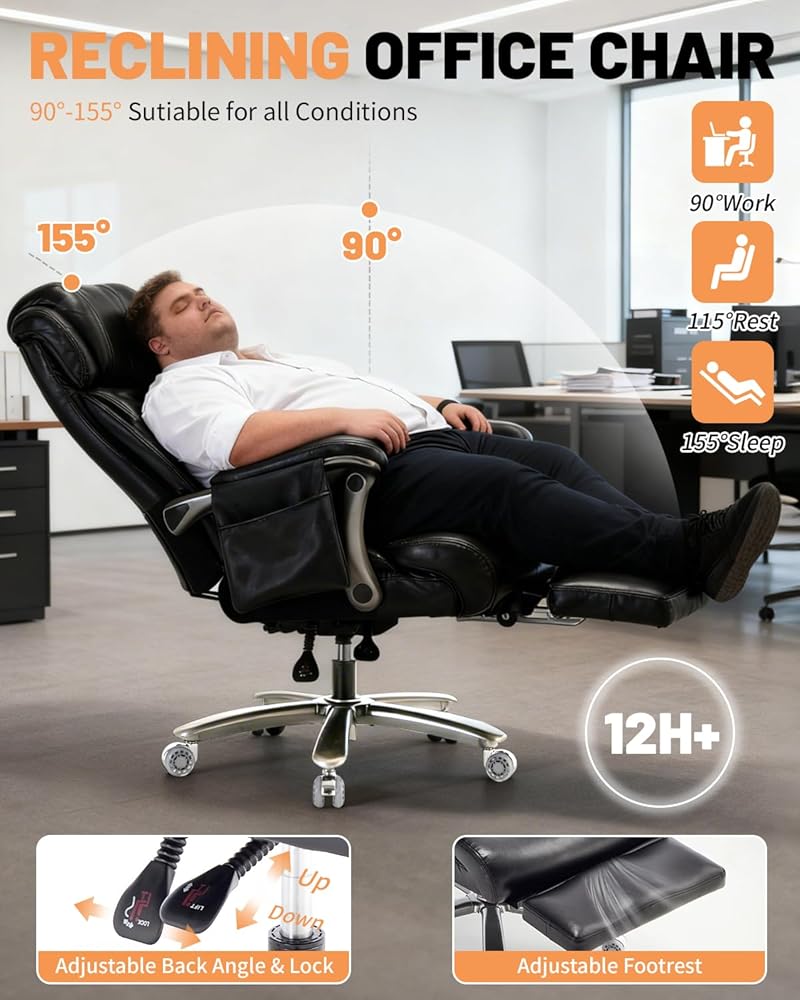🌟【تصميم مريح】تمتع بدعم سلس حيث أن كرسي المكتب الكبير والطويل هذا يتلاءم مع شكلك الفريد. يضمن التصميم المتكامل ضبط مساند الذراعين تلقائيًا مع مسند الظهر المتكئ، مما يحافظ على وضعك المثالي الذي يخفف الضغط طوال اليوم. قل وداعًا لآلام الظهر واكتشف الكرسي الذي يعطي الأولوية لراحتك طوال اليوم.