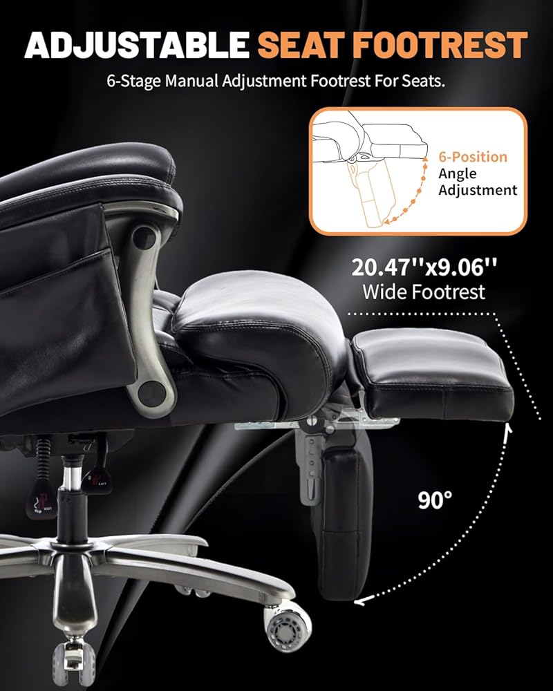 🌟【كرسي مكتب مستلق】مسند الظهر المتكئ لكرسي الكمبيوتر الخاص بنا قابل للتعديل من 90 درجة إلى 150 درجة، مما يتيح لك العثور على وضعك المثالي للحصول على أقصى درجات الراحة. بالإضافة إلى ذلك، يأتي كرسي المكتب مع مسند قدم قابل للتعديل بـ 6 أوضاع، والذي يمكن تحريكه لأعلى ولأسفل في ستة أوضاع مختلفة للسماح لساقيك بالاسترخاء التام.