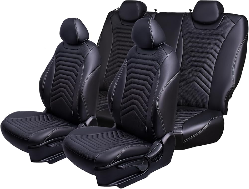راحة فاخرة من الجلد البيئي - مصنوعة من جلد البولي يوريثان الناعم الملمس، تتميز أغطية المقاعد هذه ببطانة إسفنجية متعددة الطبقات (حتى 8 مم) تعزز الراحة، وتخفي عيوب المقعد، وتمنح الجزء الداخلي مظهرًا فاخرًا وأنيقًا ستقدره في كل مرة تقود فيها.