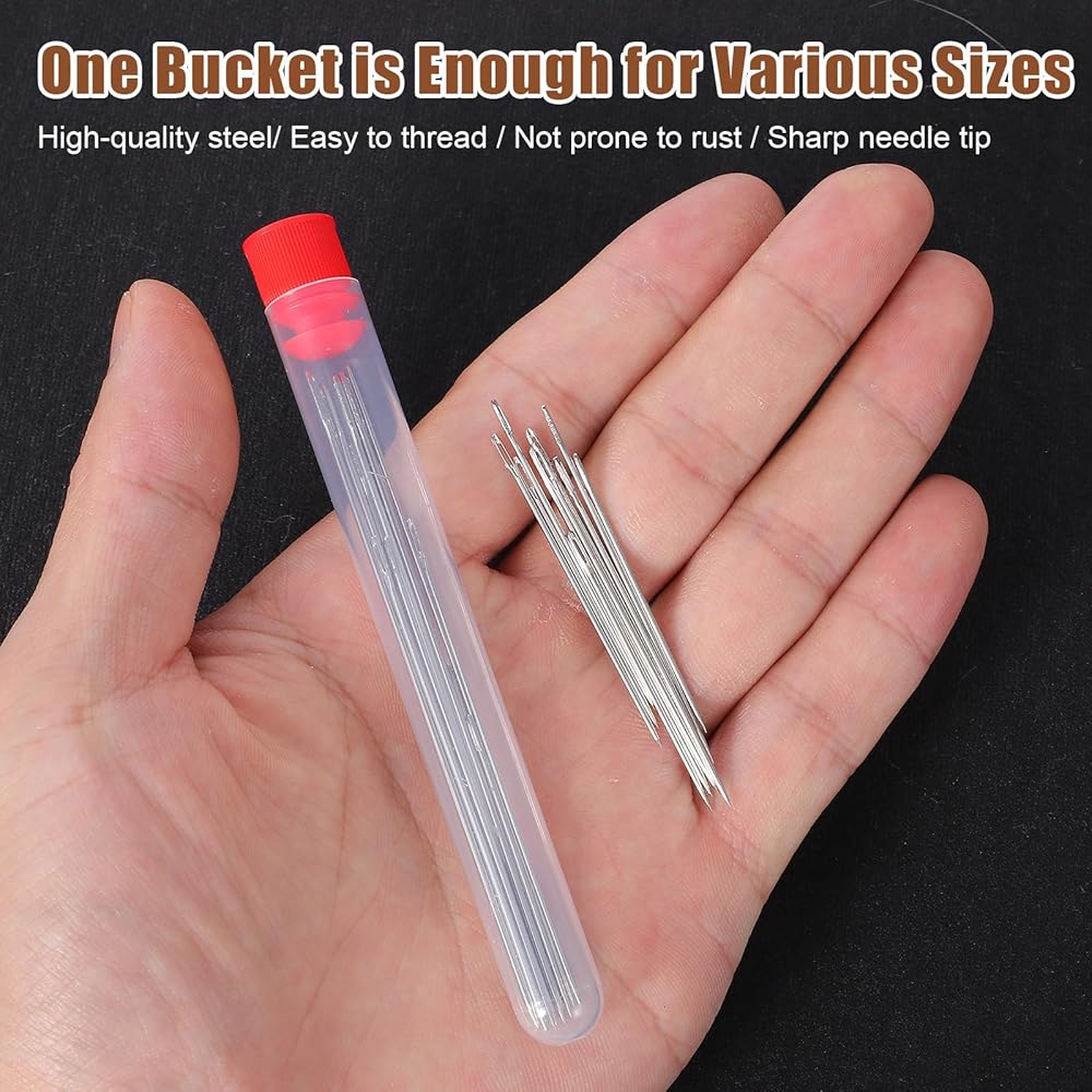 【Safe and Portable Design】Safety is a priority. This big eye steel sewing needl kit for adults includes a seam ripper and sharp needles, all stored in a protective case for worry-free transport. Thimbles protect your fingers, making it ideal for delicate projects