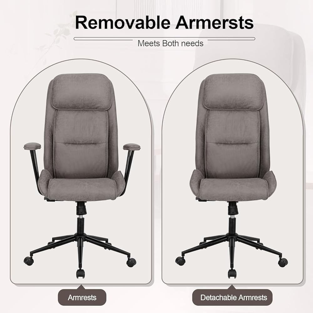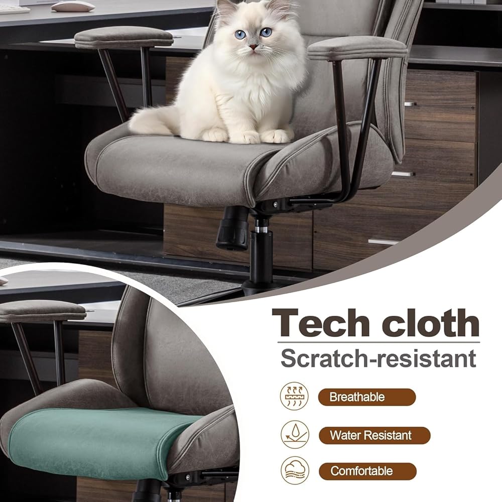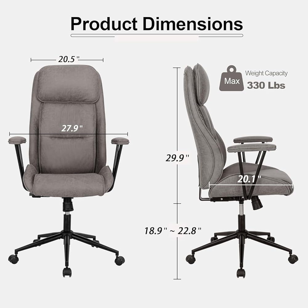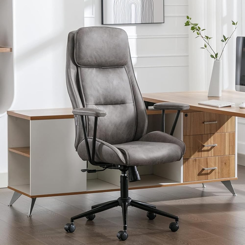 كرسي مكتب تنفيذي عالي الظهر من Okeysen، كرسي مكتب حديث مع ارتفاع قابل للتعديل، كرسي دوار في منتصف القرن، مساند للذراعين قابلة للإزالة، سعة وزن 330 رطل، رمادي