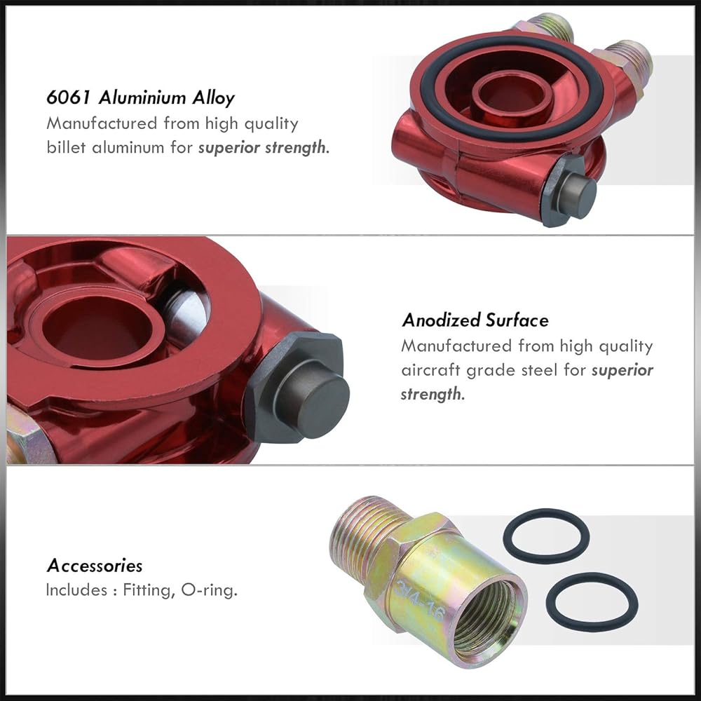 يقوم موزعو AJP بترقية JDM Universal 3/4-16 UNF فلتر زيت محرك السيارة مبرد مجموعة لوحة محول الساندويتش 10AN AN10 + التحكم في الحرارة من الألومنيوم المؤكسد باللون الأحمر