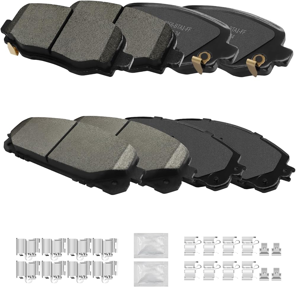 مجموعات وسادات الفرامل الأمامية والخلفية من السيراميك مع مجموعة الأجهزة، متوافقة مع 2014 2015 2016 2017 2018 2019 2020 2021 2022 جيب شيروكي مع فرجار أمامي مزدوج المكبس (D1734، D1843)
