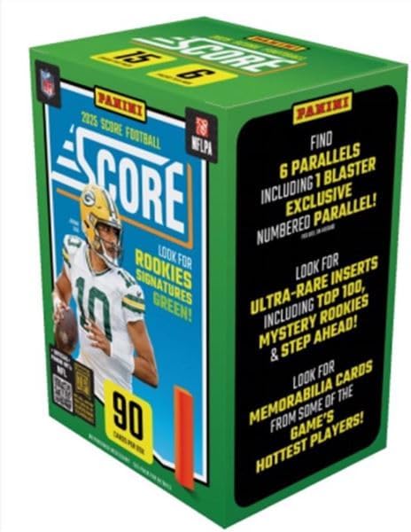 2025 بطاقات بانيني سكور لكرة القدم بلاستر بوكس ​​التجارية، بانيني 90 بطاقة في كل صندوق.15 بطاقة في كل علبة. 6 عبوات في كل صندوق.