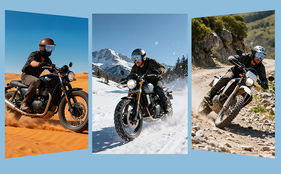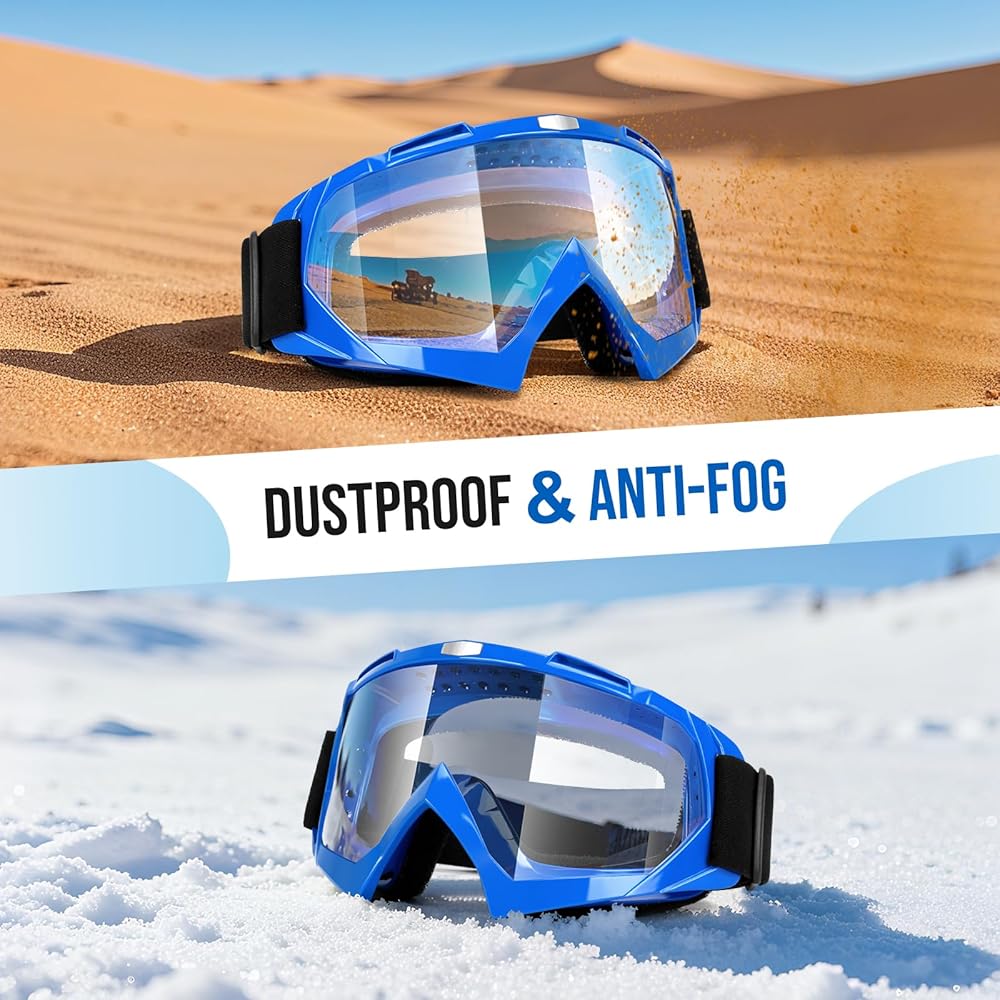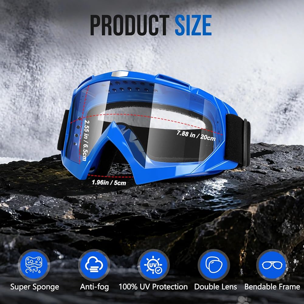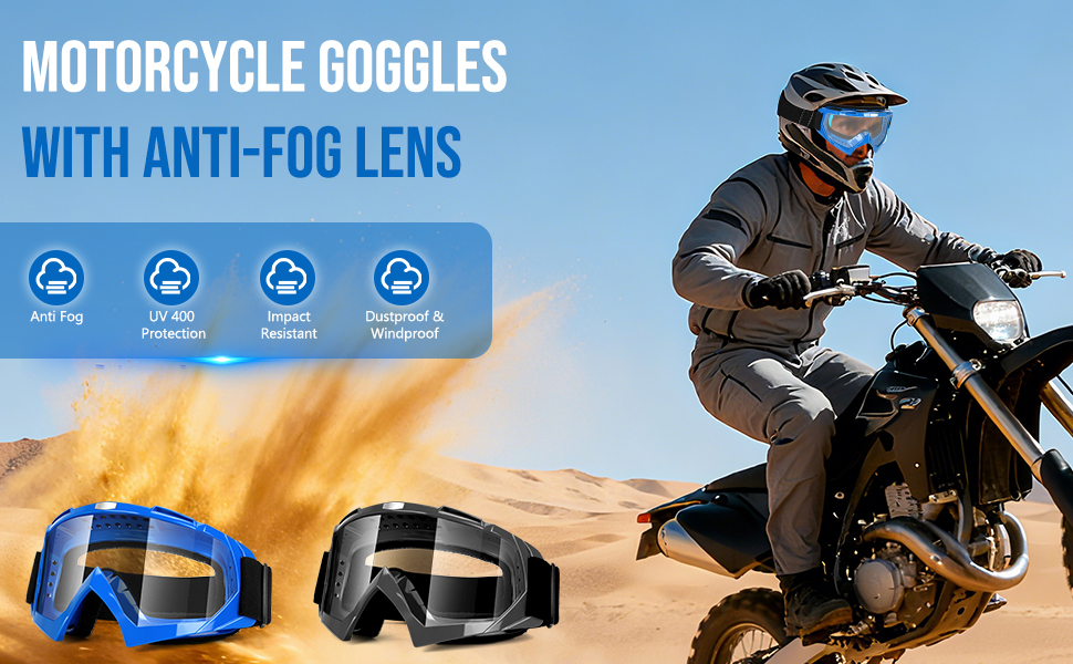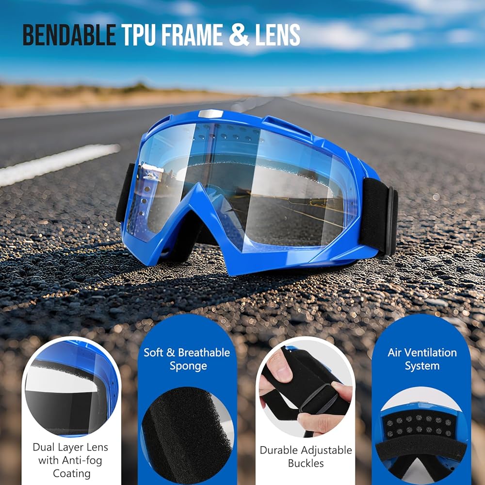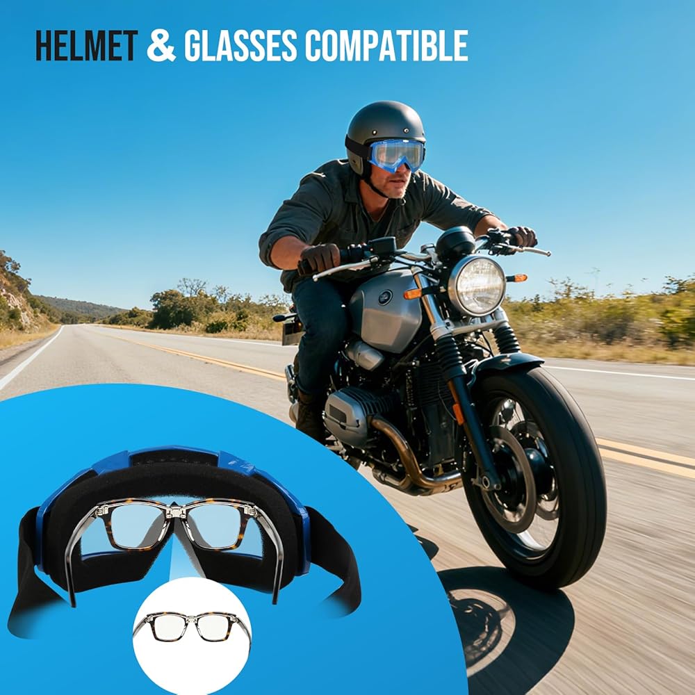 حماية كاملة للعيون: نظارات الدراجات النارية هذه مع عدسات PC مقاومة للصدمات وإطار من مادة TPU القابلة للانحناء. حماية 100% من الأشعة فوق البنفسجية، مقاومة للرياح والغبار، مع قماش نظارات مضاد للضباب لحماية عينيك بشكل آمن. إسفنجة فائقة من الداخل لارتداء مريح وتوفير أعلى مقاومة للصدمات.