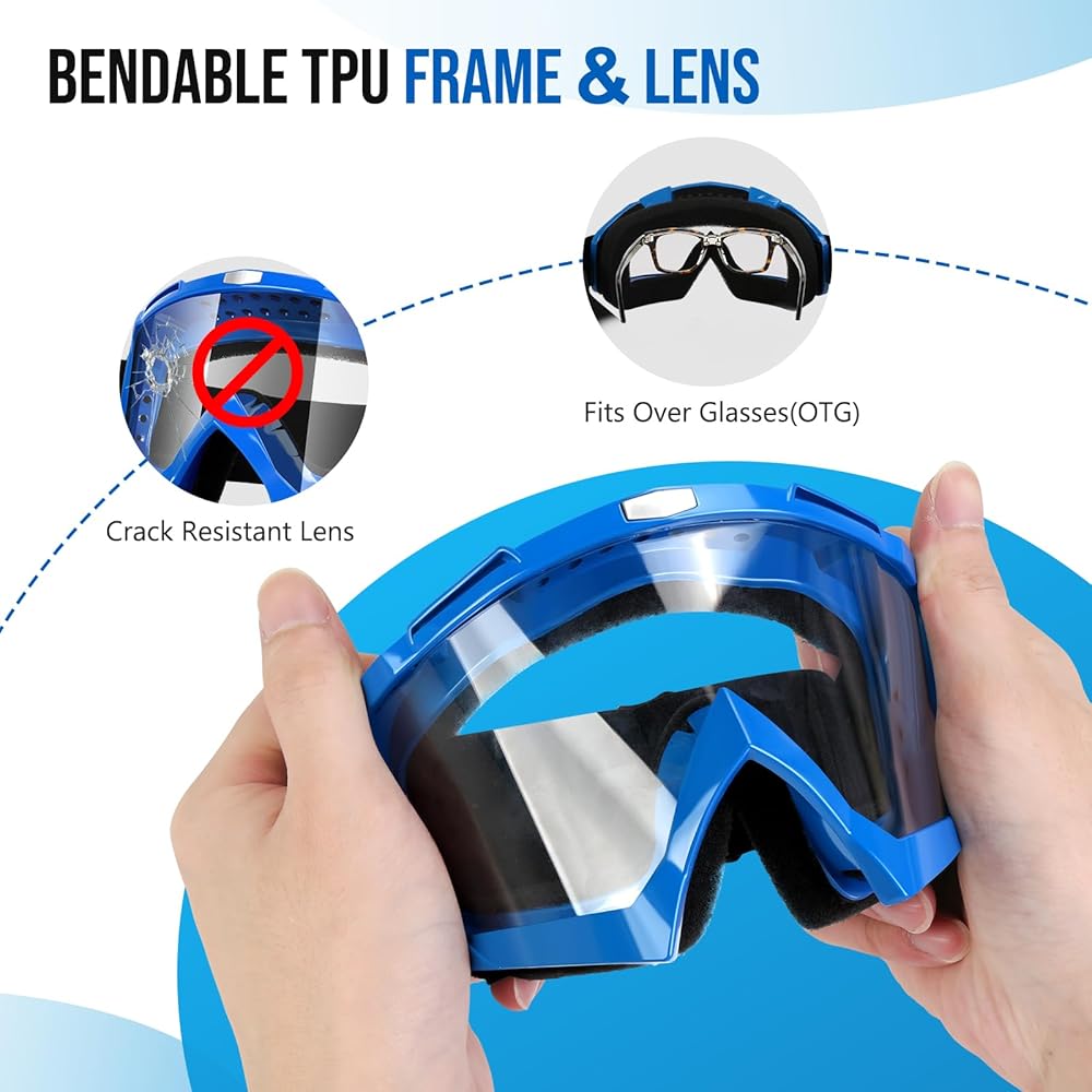 قابلة للانحناء وخفيفة الوزن: نظارات الطرق الوعرة خفيفة الوزن للغاية لسهولة الحمل ولن تعطي عينيك عبئًا. مع إطار TPU القابل للانحناء يجعلها مقاومة للانحناء، وليس من السهل أن تنكسر أو يتغير شكلها. متينة للغاية ومضادة للسقوط.