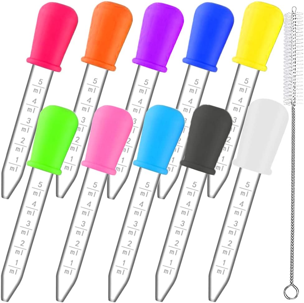 قطارات سائلة من 10 قطع من السيليكون 5 مل خالية من البيسفينول ايه بنسبة 100% مع طرف لمبة وفرشاة نظيفة، مناسبة للفم وقالب حلوى الاطفال وصانع الجيلاتين وعلوم الزيوت والمشاريع اليدوية