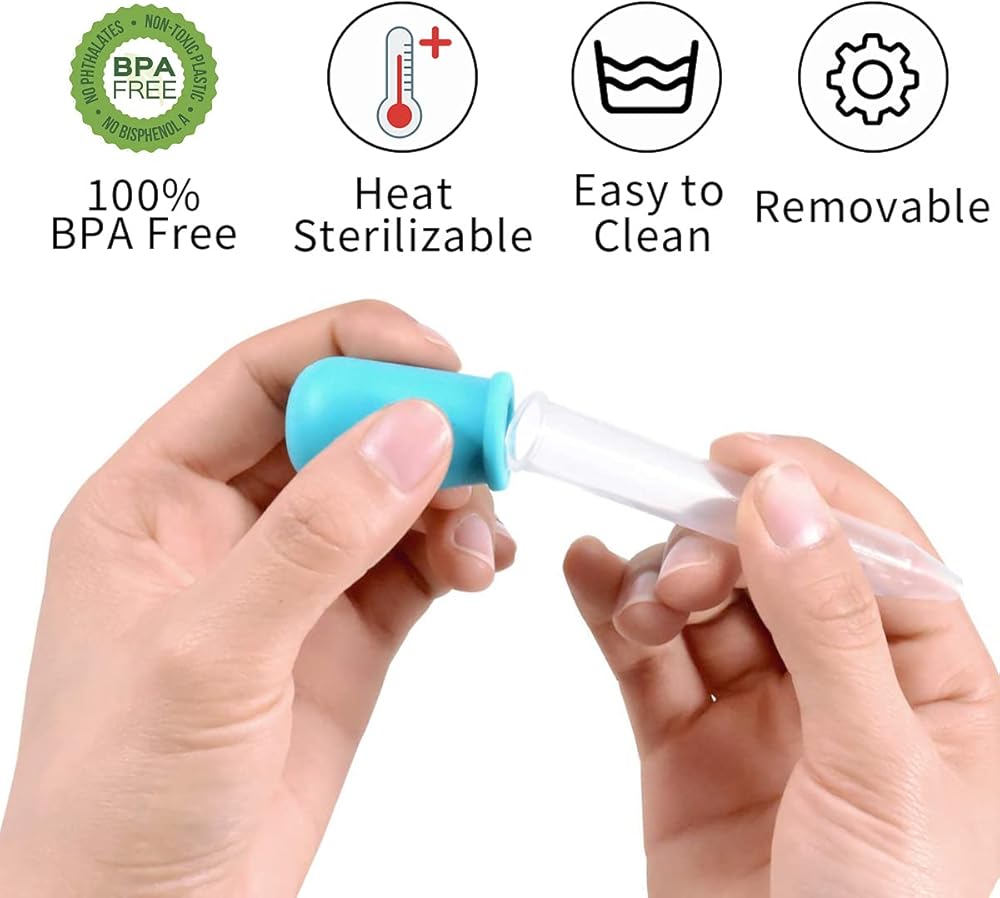قطارة العين المصنوعة من السيليكون ليست لزجة وسهلة التنظيف بالماء الساخن. القياس محفور بالبلاستيك ولا يُغسل أبدًا.