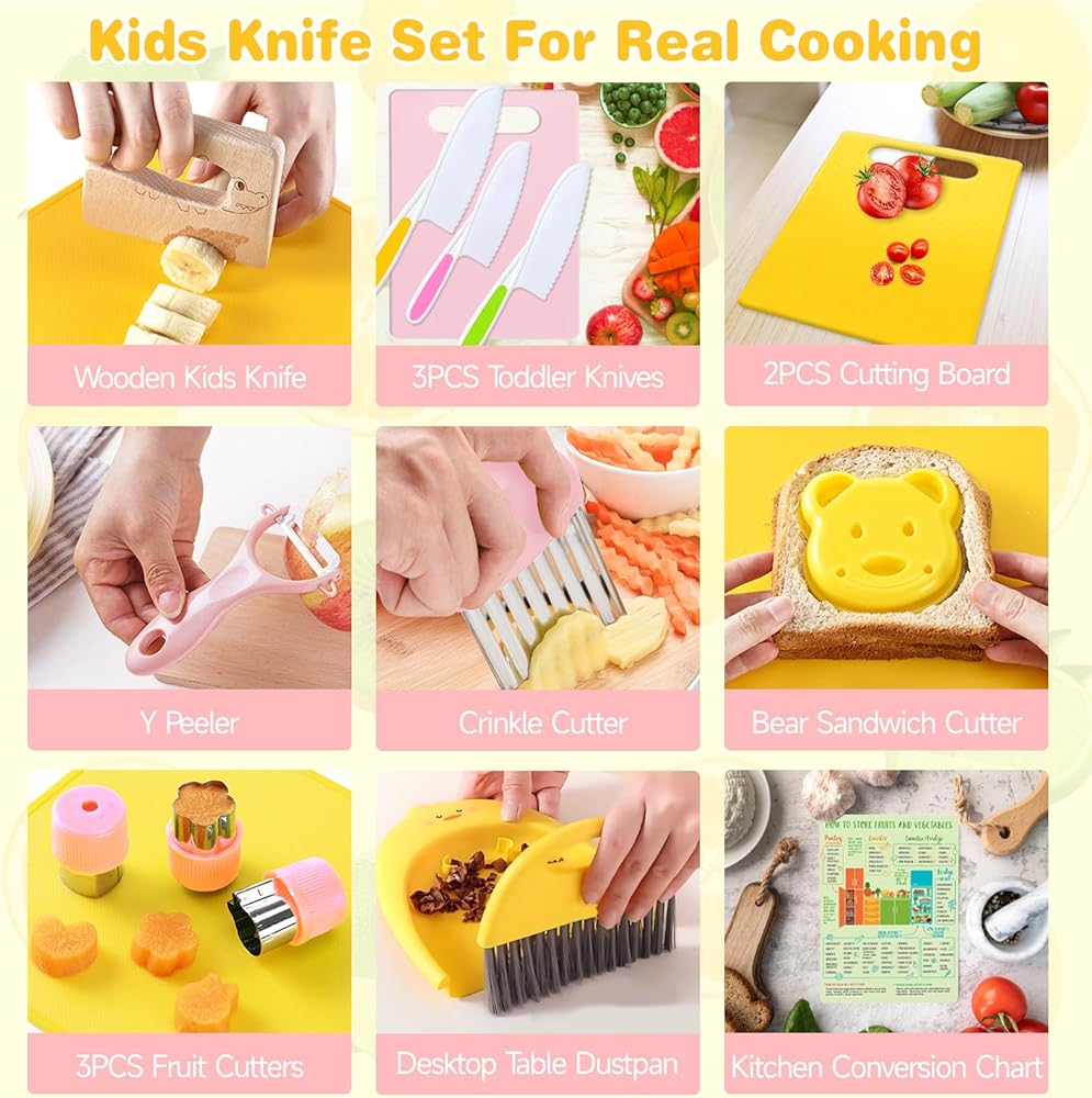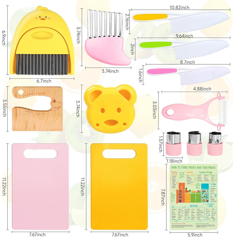 • 👩🏻‍🍳👍مجموعة مطبخ للأطفال الصغار: سوف تحصل على قطعة واحدة من سكين الأطفال الخشبي، وقطعتين من لوح التقطيع، و3 قطع من سكاكين الأطفال ذات الحواف المسننة، ومجموعة واحدة من مقالي الغبار الصغيرة لسطح المكتب، وقطعة واحدة من قاطع التجعد، وقطعة واحدة من مقشرة على شكل حرف Y، وقطعة واحدة من قطاعة شطائر الدب، و3 قطع من قاطعات الفاكهة، ومغناطيس مخطط تحويل المطبخ للثلاجة. ستسمح لك البيانات والصور سهلة الفهم بتحويل القياسات بسرعة عند الطهي أو الخبز أو القياس.