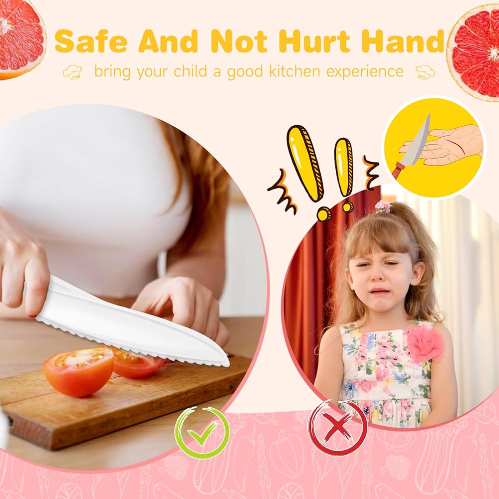 • 👩🏻‍🍳🎁 【هدايا عيد الميلاد للأطفال 】 سوف يكون أطفالك حريصين على الانضمام إليك مع مجموعة سكاكين الأطفال الصغار هذه في المطبخ. تحفيز اهتمام الطفل والسماح لهم بالاستمتاع بوقت الطبخ مع عائلتك. من خلال ممارساتهم الخاصة، يمكن للأطفال تحسين قدرتهم العملية، وتعزيز العلاقة بين الوالدين والطفل، وتعلم عادات الحياة الصحية للآباء. ستكون هدية جيدة للأطفال في أعياد الميلاد أو العطلات.