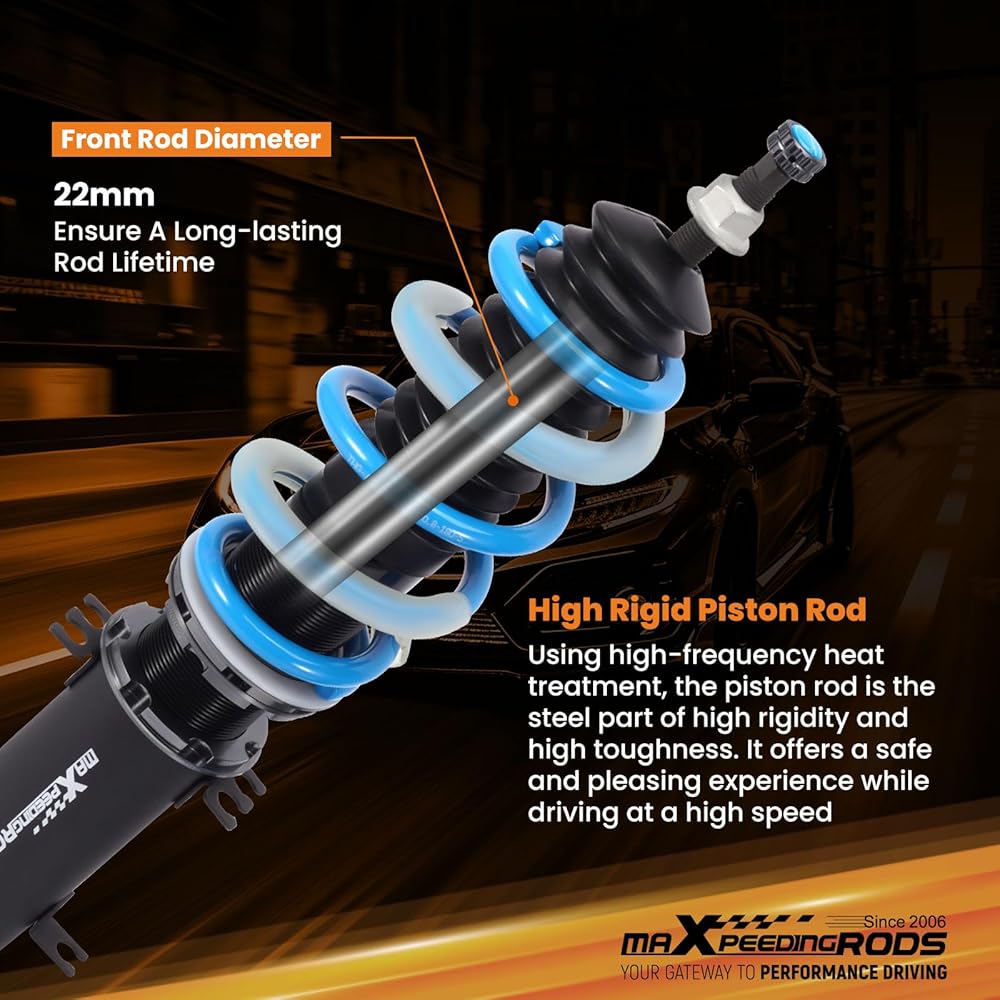 【زنبرك عالي الشد】 معدل الزنبرك الأمامي: 6 كجم/مم (336 رطل/بوصة) ومعدل الزنبرك الخلفي: 6 كجم/مم (336 رطل/بوصة) مع تحميل زنبركي مسبق: 7-10 مم. زنبرك ذو أداء عالي الشد - تم اختبار الإجهاد أكثر من 600000 مرة بينما يكون التشوه الزنبركي أقل من 0.04%