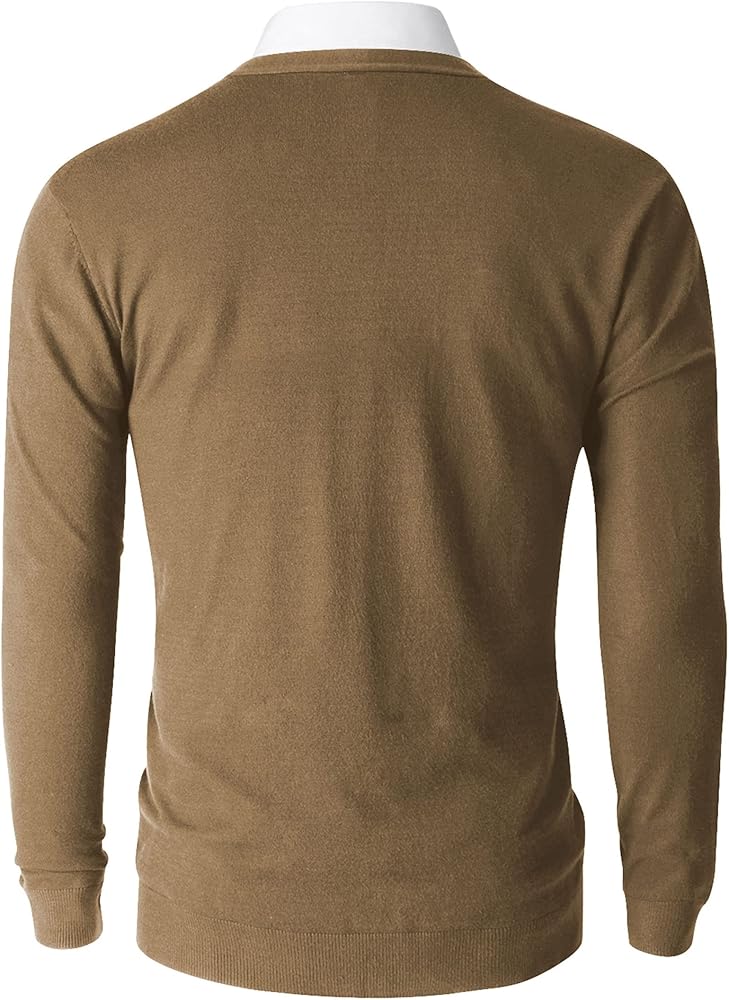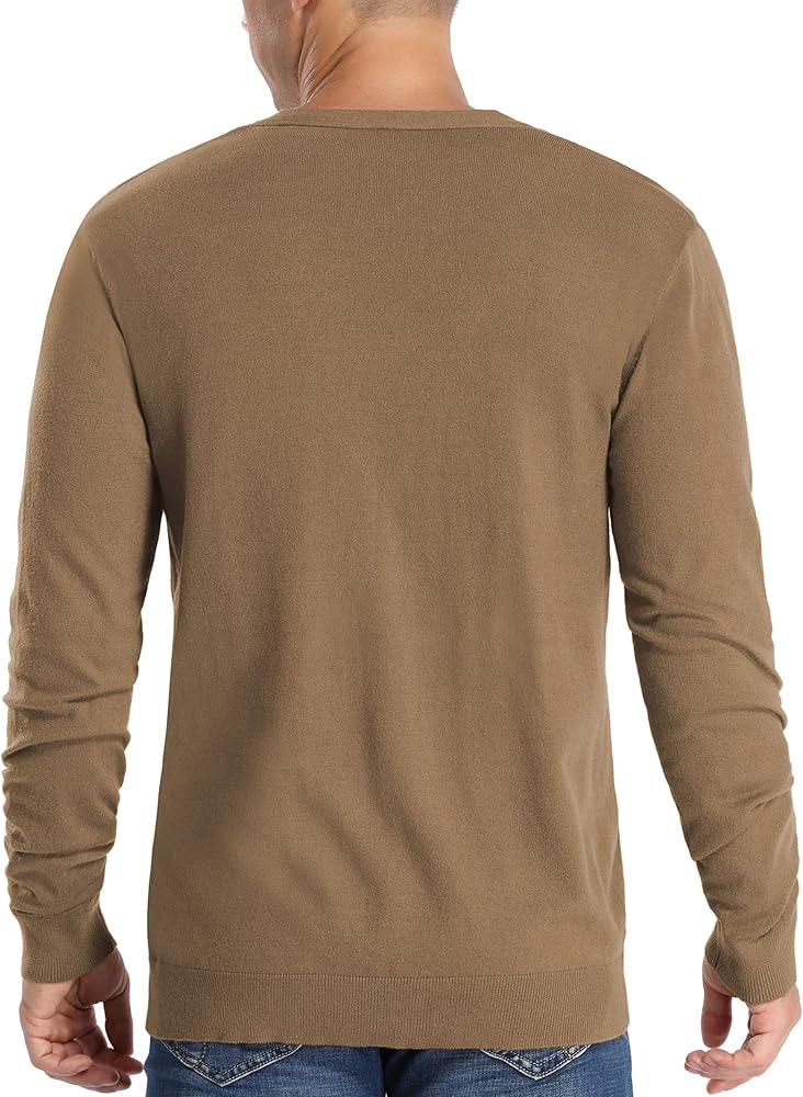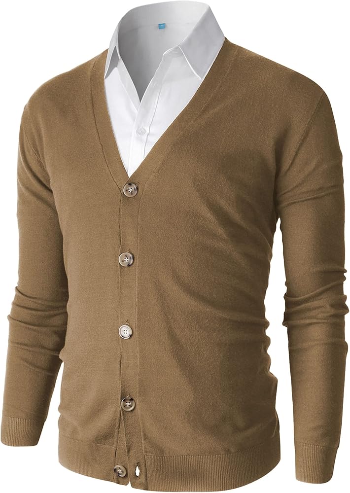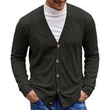 سترة Aimeilgot الرجالية الكاجوال ذات المقاس النحيف والرقبة على شكل حرف V مع أزرار (كاكي داكن، صغير)