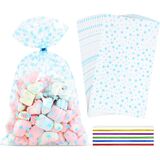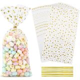 ما تحصل عليه: 100 قطعة مقاس 6 × 10 بوصة (15.24 سم × 25.4 سم) أكياس سيلوفان على شكل نجمة ذهبية و100 قطعة من أشرطة ملتوية فضية (طول 4.7 بوصة)، إكسسوار تزيين رائع للحلوى والحفلات وحفلات الزفاف وتغليف الهدايا والحرف اليدوية والمزيد