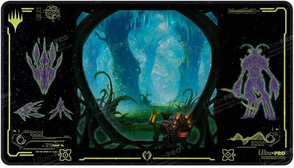 Playmats feature popular MTG artwork. Made with a soft fabric top to reduce damage to cards during play and a non-slip rubber backing to keep the playmat from shifting during use, playmats enhance the gameplay experience. With dimensions of approximately 24 in. x 13.5 in., a playmat also makes an excellent oversize mousepad for home or office.