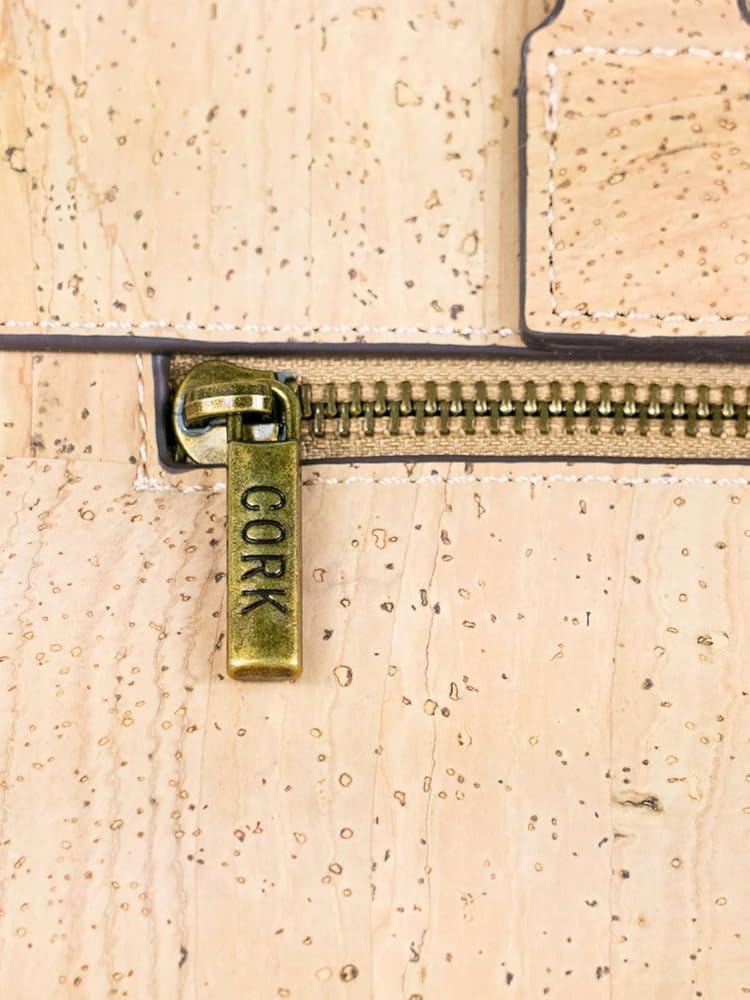 PREMIUM MATERIALS: Crafted from natural Portuguese cork and vegan leather, featuring antique bronze hardware and durable cotton-polyester blend lining