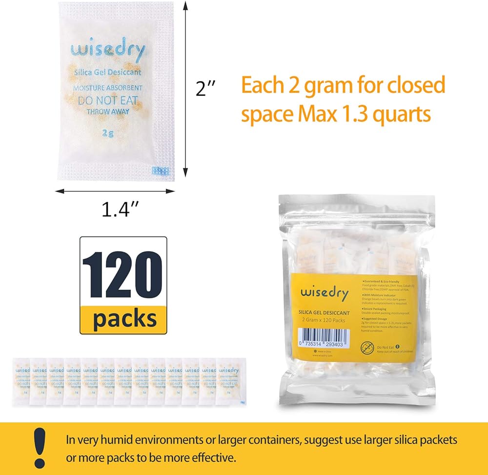 ويسدري عبوة من 120 عبوة بوزن 2 غرام من جل السيليكا المجفف مع خرز مؤشر ملون، عبوات ماصة للرطوبة لصناديق الطعام والاحذية والتوابل، مجموعة بذور التخزين من الدرجة الغذائية