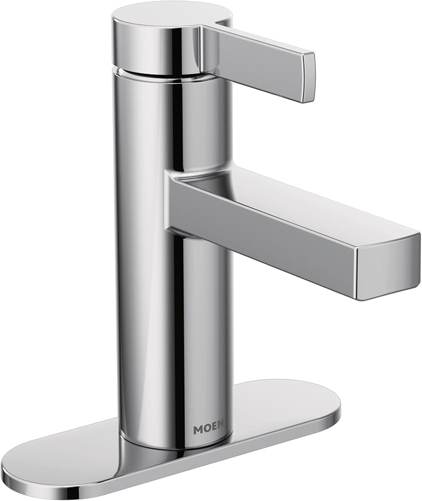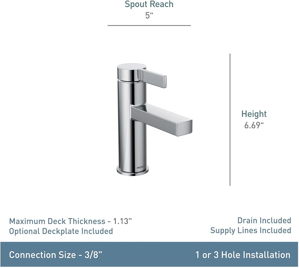 صنبور حمام Moen Beric Chrome ذو فتحة واحدة ومقبض واحد مع مجموعة تصريف ولوحة اختيارية لحوض الحمام الخاص بك، 84774