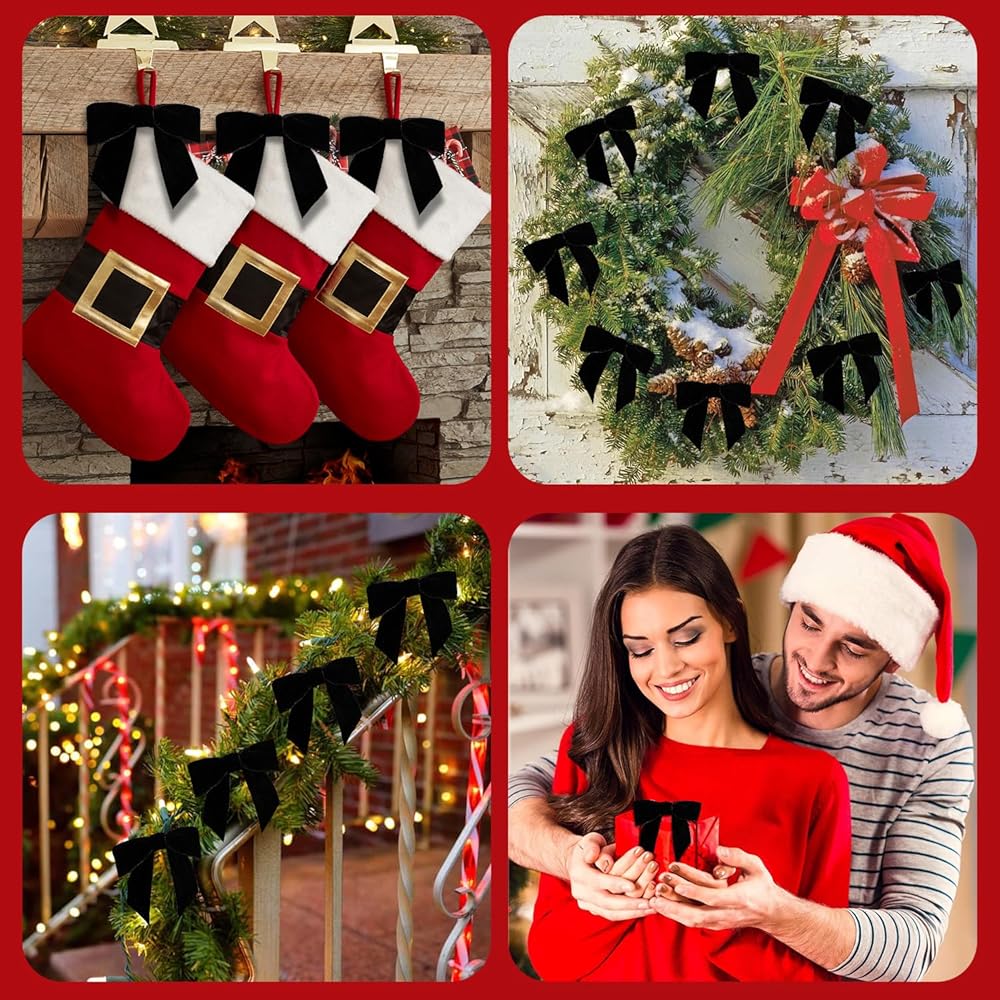 جاهز للاستخدام: يأتي كل قوس مخملي لعيد الميلاد مع ربطة عنق ملتوية مريحة، مما يسمح لك بربطها بسهولة أينما تريد. يضيف القماش المخملي عالي الجودة لمسة عتيقة وأنيقة إلى جميع ديكورات عطلتك.
