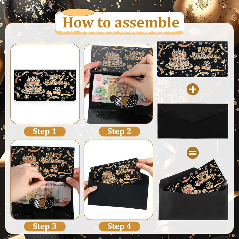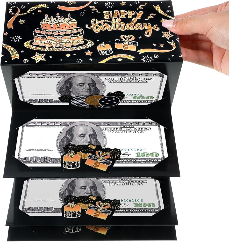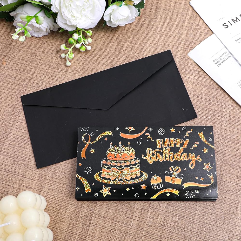 • 【Exquisite Design】The front of this money holder for cash gift is printed with exquisite "Happy Birthday" words and birthday cake in golden luster. The smooth curves and exquisite details will add atmosphere to your birthday