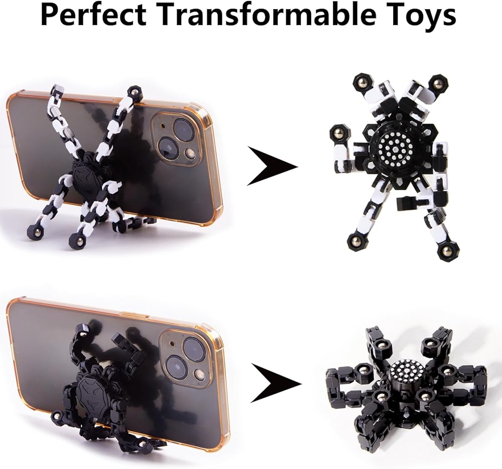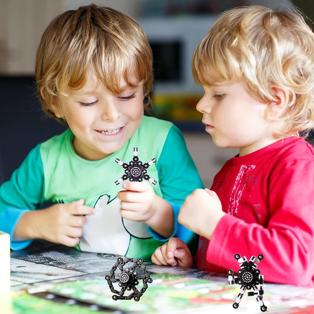 【جيروسات إصبع قابلة للتحويل】 تتضمن دوارات الأصابع. يحتوي كل سبينر على ست سلاسل قابلة للتشوه. يمكن لكل رابط أن يدور ويثبت في 5 مواضع، ويمكنك إنشاء أي أشكال تريدها، مثل أشكال مختلفة من الدوارات والروبوتات وحتى حاملات الهواتف المحمولة. يمكنها أيضًا تدريب قدرة طفلك على الاستخدام العملي والتنسيق بين اليد والعين والقدرة على التفكير المنطقي من خلال تغيير شكل الألعاب.