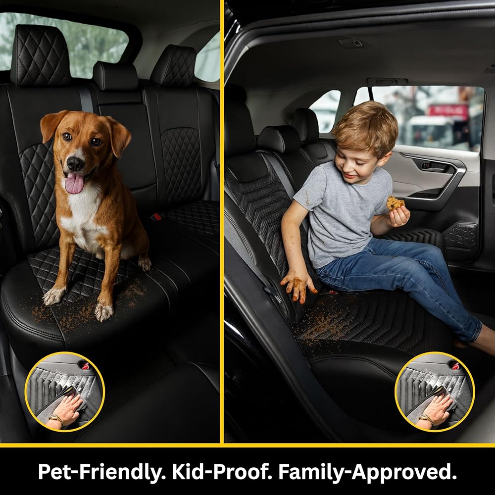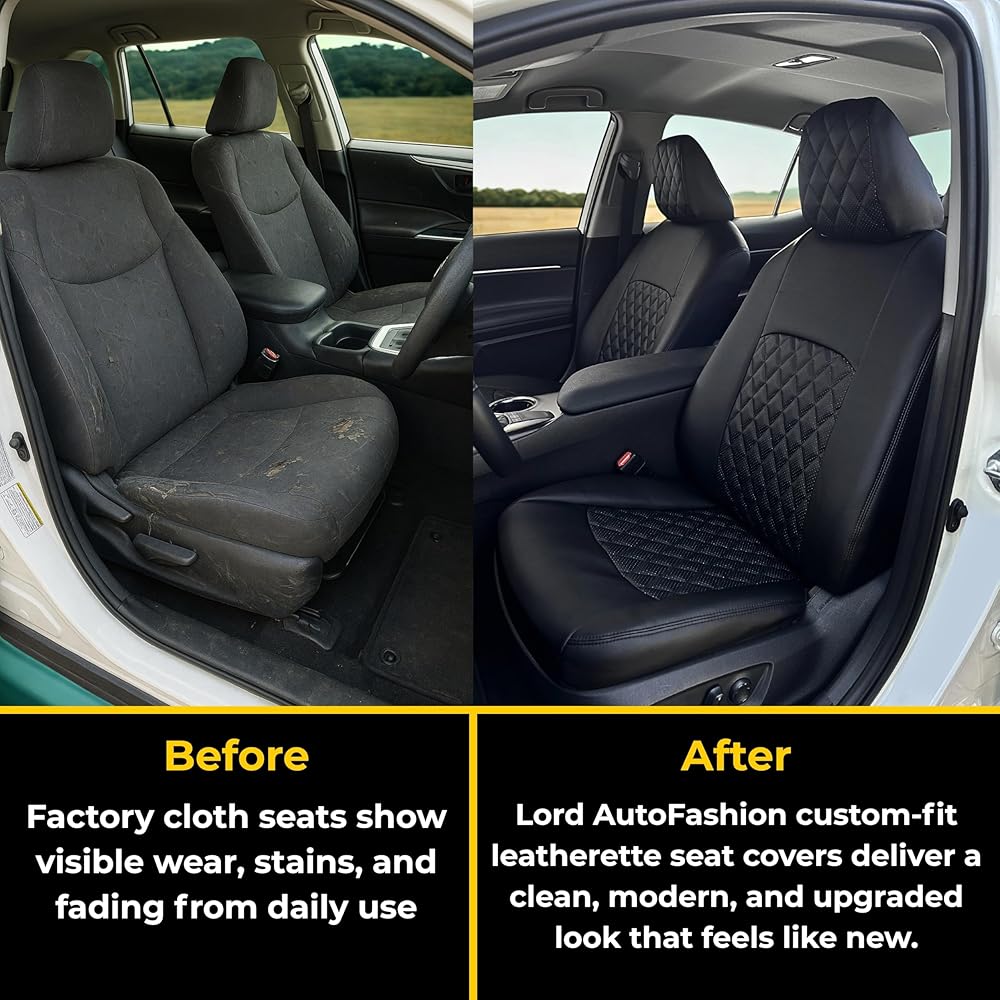 ملاءمة مثالية لسيارة TOYOTA HIGHLANDER: تضمن أغطية المقاعد لدينا ملاءمة مريحة، مصممة خصيصًا لسيارة Toyota Highlander 2020-2025 مع 3 صفوف، مقعد الصف الثاني مقسم 40/60. إنها توفر تغطية سلسة، وتحافظ على المفروشات الأصلية من التآكل، مع الحفاظ على المظهر المتطور. (ليس مخصصًا لكراسي الكابتن في الصف الثاني.)