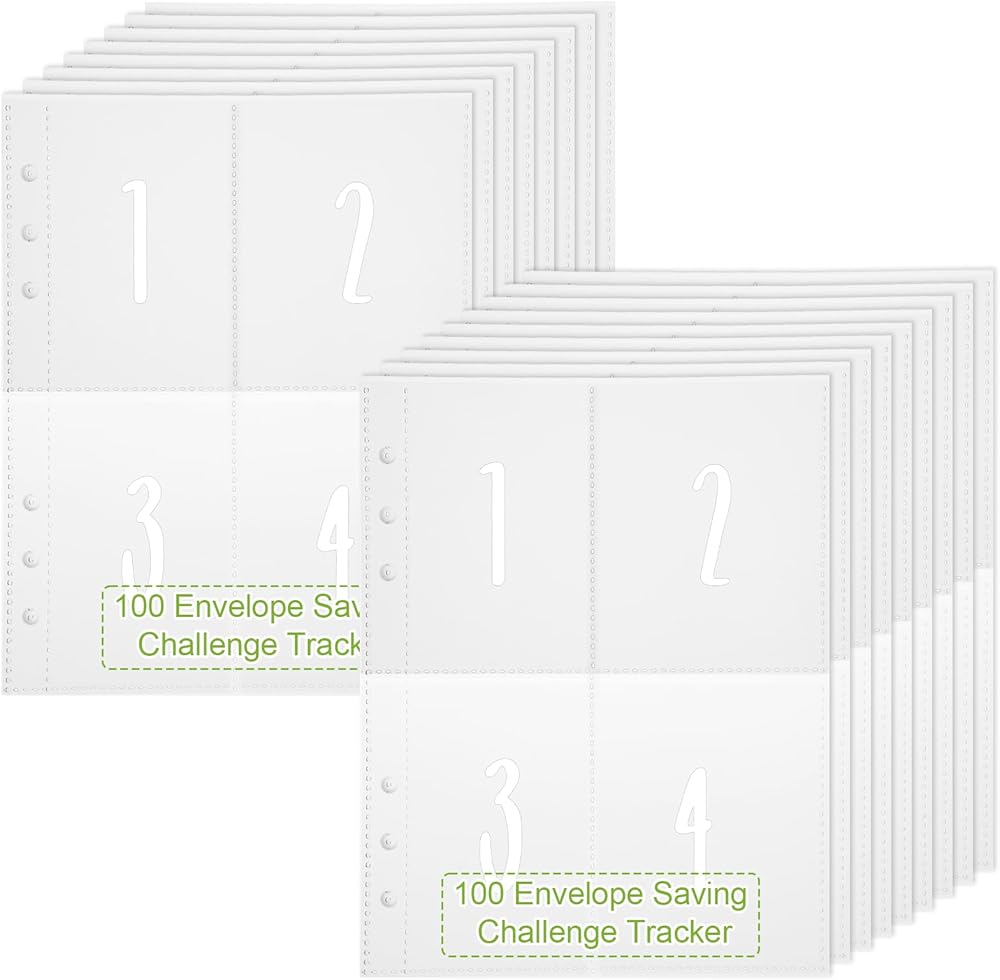 • 100 envelopes money saving challenge Sleeves: Each sheet features 4 pockets, providing a total of 100 pockets across 25 pages. Perfect for completing your 100-day savings challenge with a partner.