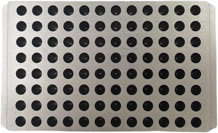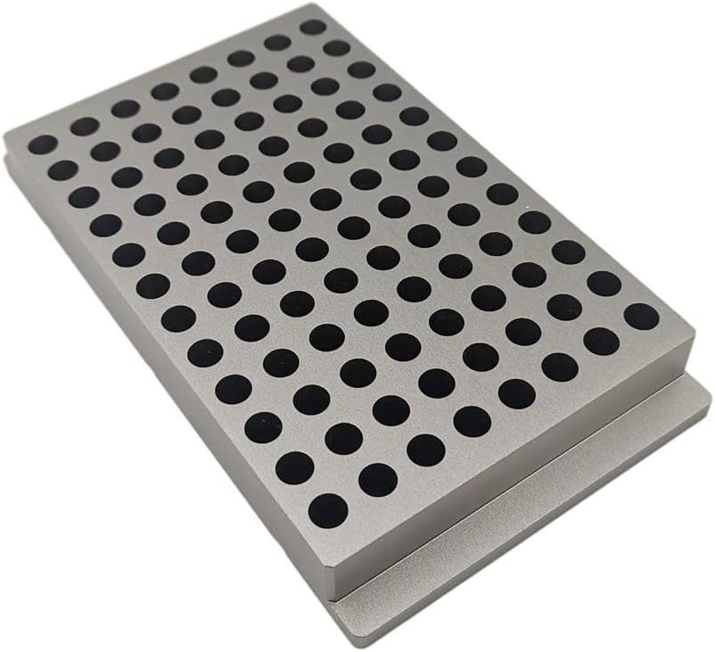 The Metal block is made for temperature control experiments. Made of high-quality aluminum, it can make a fast heat conduction. The precise production process also makes sure its heat conduction even, complete, and efficient. It fits 0.2 mL tubes and 96-well PCR plate.