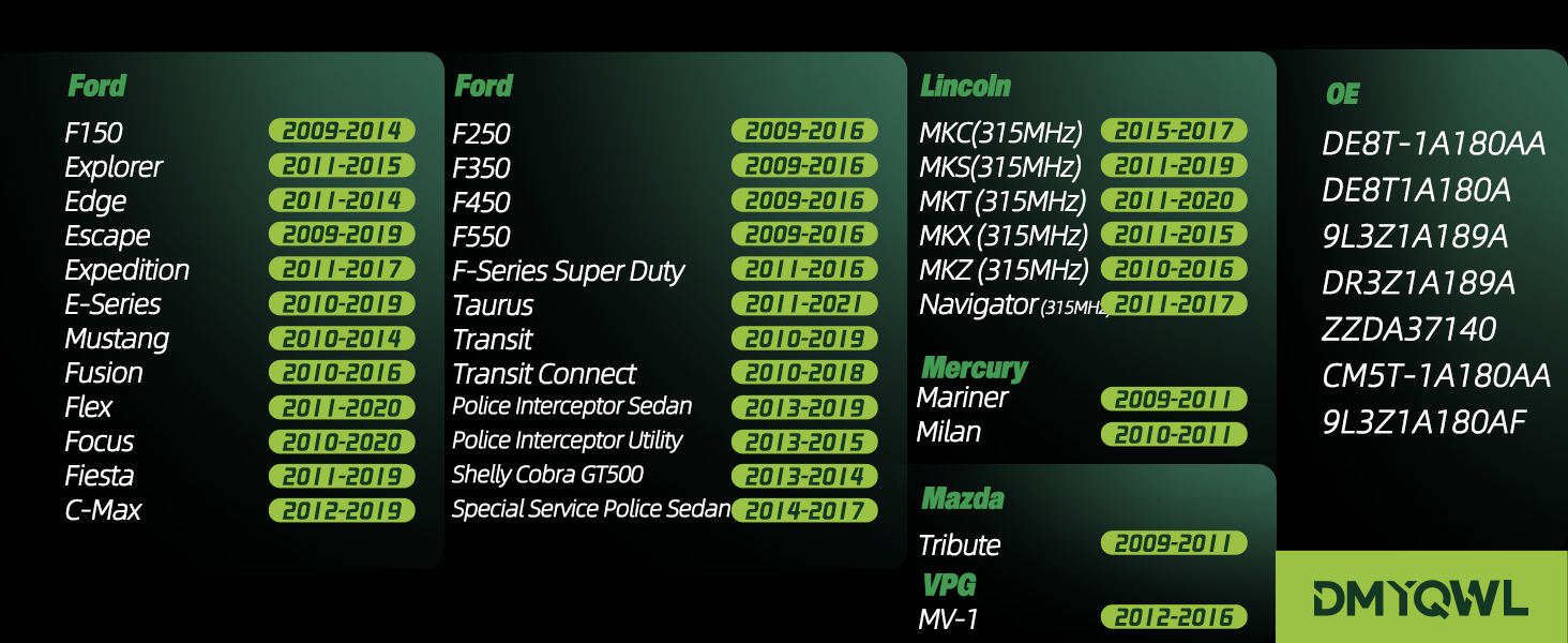 【استبدال رقم الجزء】استبدل OE# DE8T-1A180AA، DE8T1A180A، 9L3Z1A189A والمزيد.