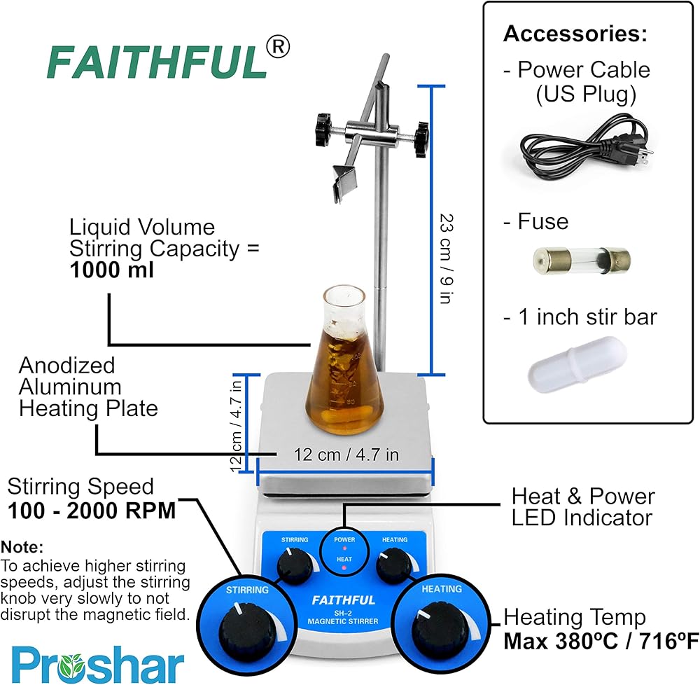 سعة التحريك والسرعة: تتميز لوحة التسخين المغناطيسية الخاصة بنا بسعة تصل إلى 1000 مل وسرعات غير متدرجة تتراوح من 100 إلى 2000 دورة في الدقيقة للحصول على دعم ممتاز.