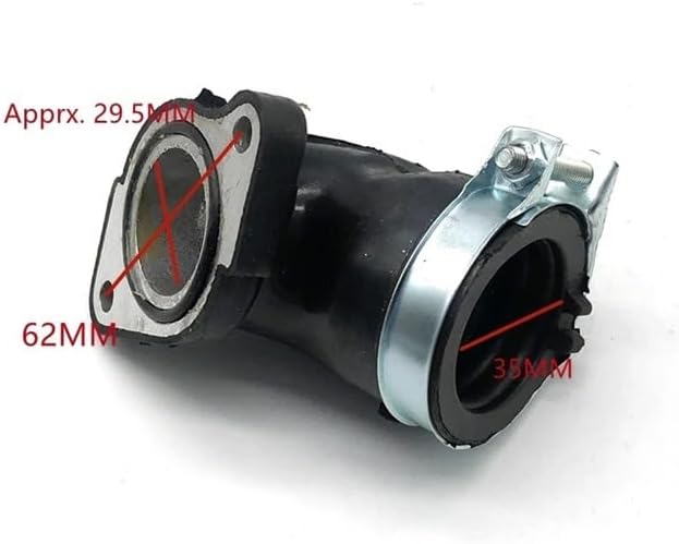 Installation dimensions: 62mm center distance of mounting holes, 29.5mm diameter of metal air inlet, 35mm diameter of rubber air inlet
