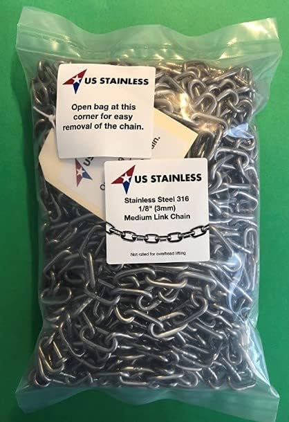 هذه سلسلة من الفولاذ المقاوم للصدأ عالي الجودة من الدرجة البحرية (AISI 316)، وهي مثالية للتطبيقات البحرية أو حيث تكون مقاومة التآكل مطلوبة. رائعة للاستخدام في التطبيقات الخفيفة التي تتطلب مقاومة للتآكل. حجم الوصلة هو 1/8 بوصة أو 3 مم في المكافئ المتري. توجد سلسلة بطول 25 بوصة في كيس بولي. الفولاذ المقاوم للصدأ AISI 316 هو درجة ممتازة من الفولاذ المقاوم للصدأ ويعتبره الكثيرون الأفضل في فئته. الفولاذ المقاوم للصدأ 316 مقاوم للتآكل. مقاومة ودائمة للغاية حتى في أقسى الظروف.